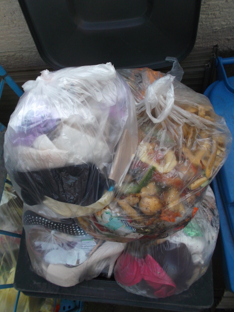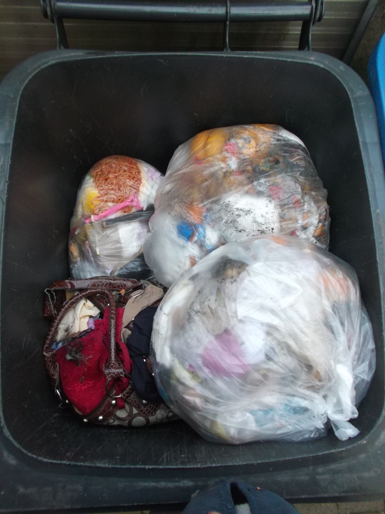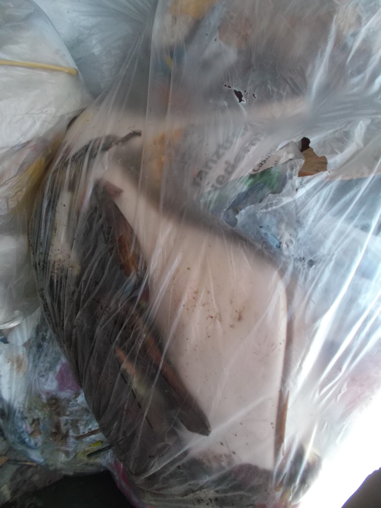 Und noch ein fetter siffiger Küchenmüllbeutel und ein Müllbeutel ausm Bad mit Nylons drin.