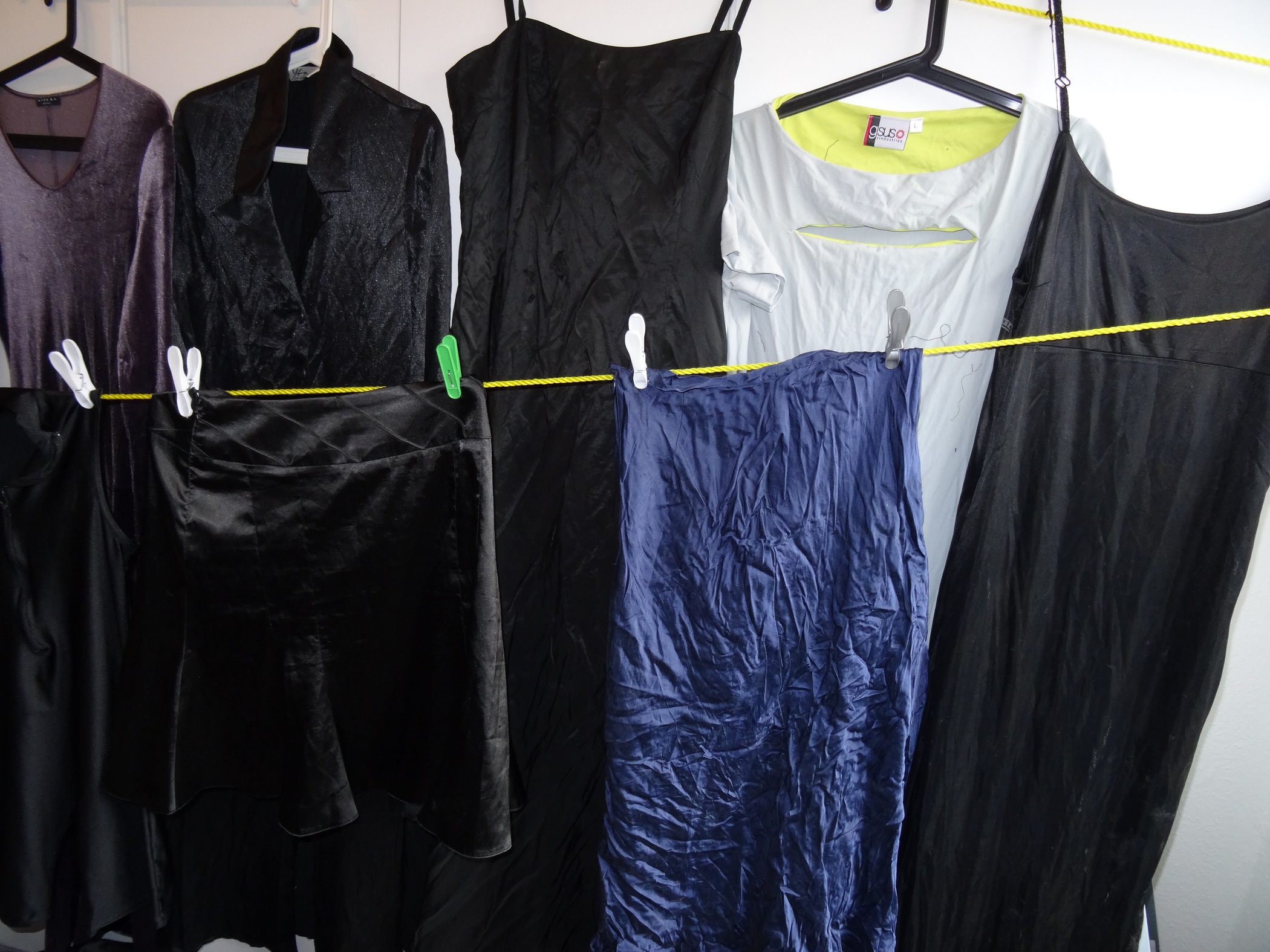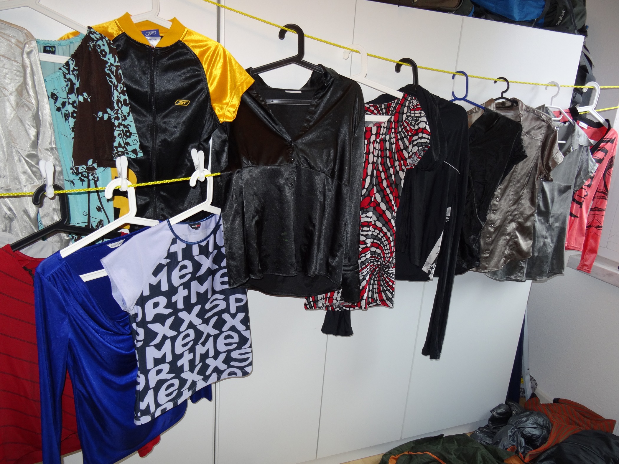 Da meine Freundin auf Dienstreise ist hab ich die Chance genutzt um einige Ihrer alten bzw. älteren Klamotten die sie lang nicht mehr getragen hat, oder die schon aussortiert worden sind aufzuhängen. Ihr habt jetzt die Möglichkeit aus den Teilen ein oder mehrere Outfits zusammenzustellen das ich dann bearbeiten und rippen werde.