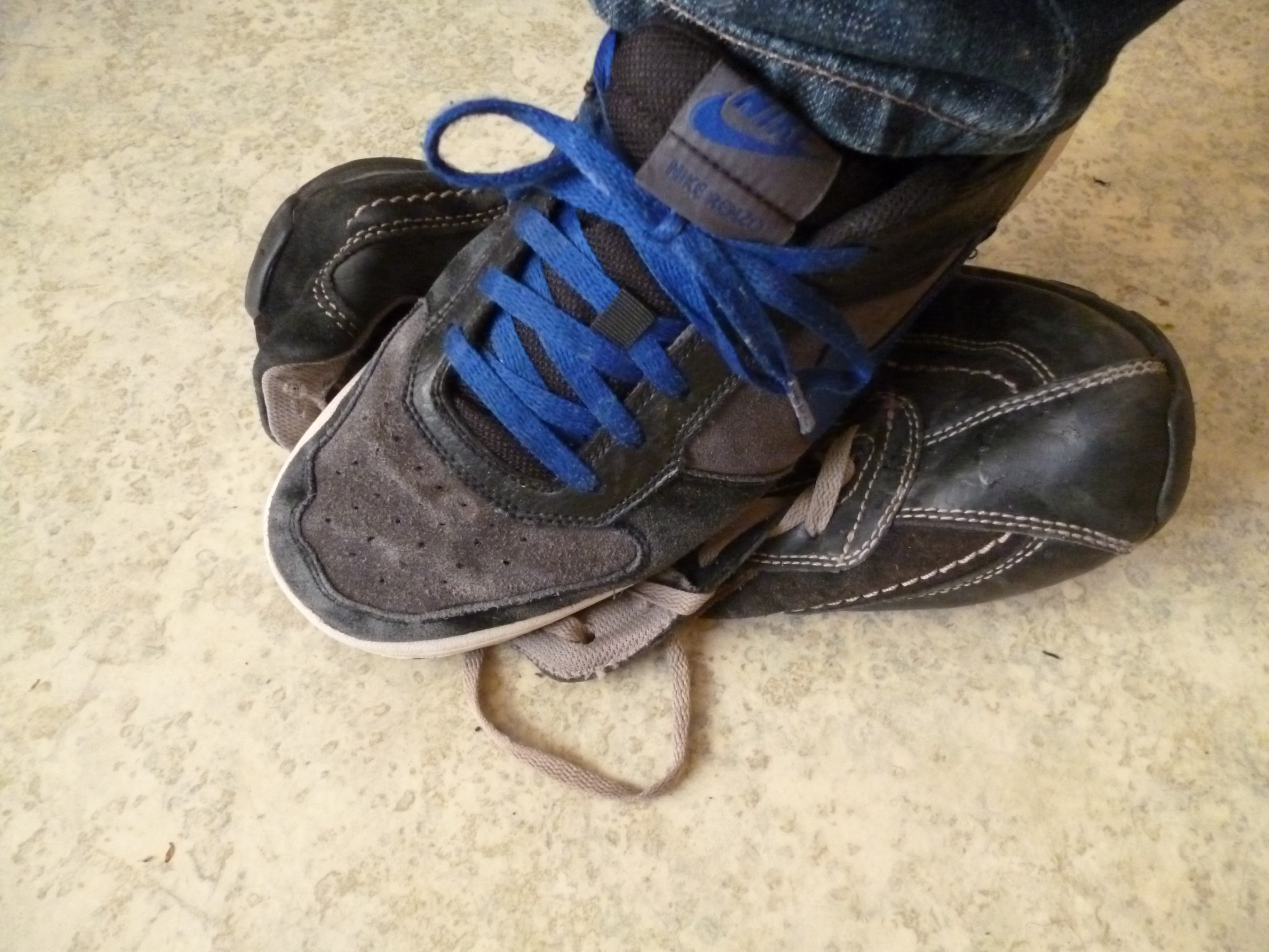 Hier mal ein Update zum übrig gebliebenen rechten Dockers Schuh,da ich nicht so recht weiß wie ich den am schönsten zerstören soll,habe ich mich für den langsamen Weg entschieden,indem der Schuh in der Wohnung langsam zertreten wird,er liegt im direkten Weg ,sodass ich jedes mal drüber laufen muss,waren bestimmt jetzt schon mehrere hundert Male,wie das aussieht zeigen die Bilder und der aktuelle Zustand des einst so lang getragenen und geliebten Treters.Wer noch ein paar Ideen hat,wie ich dem noch zusetzen kann,immer her damit.