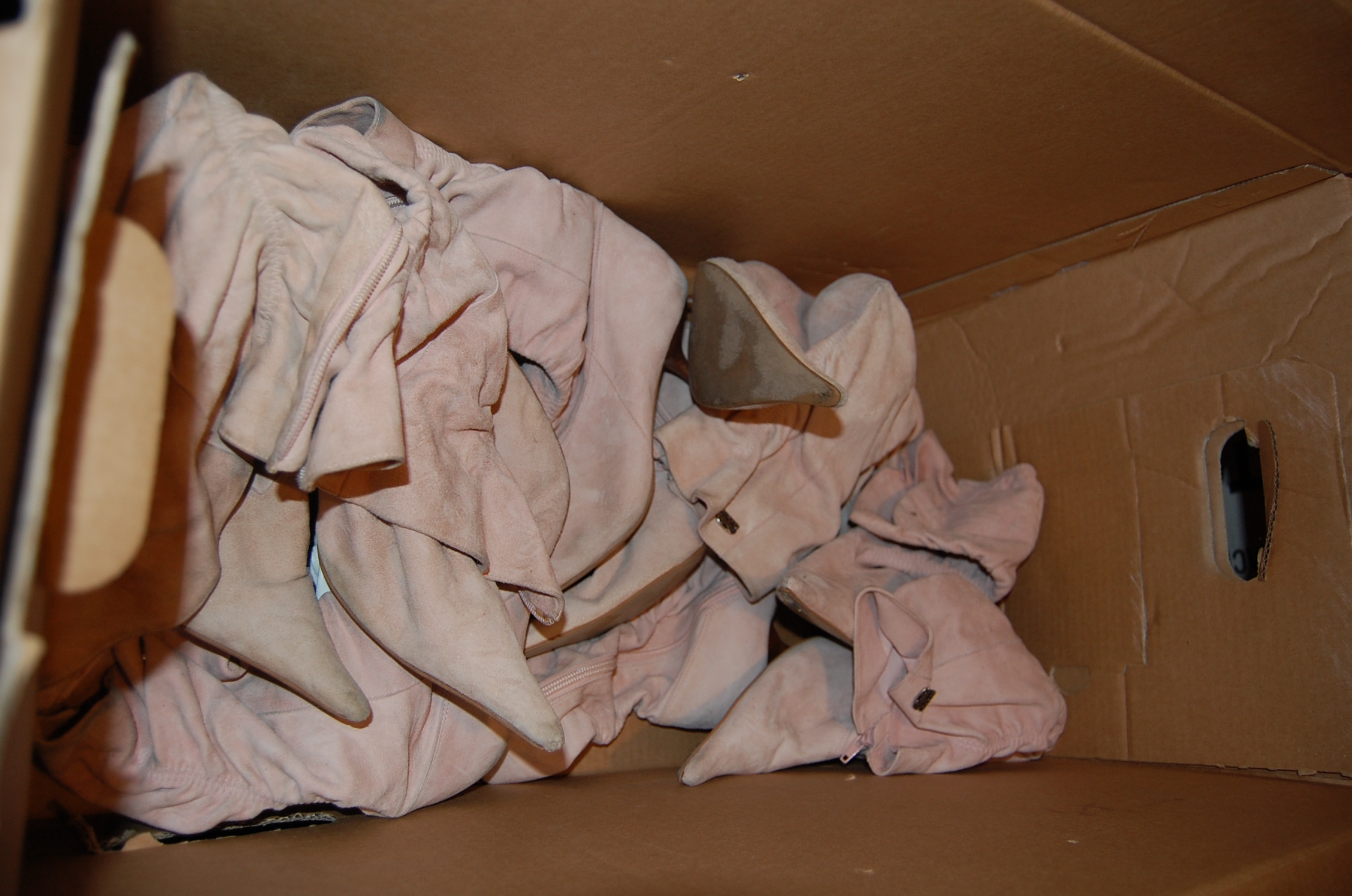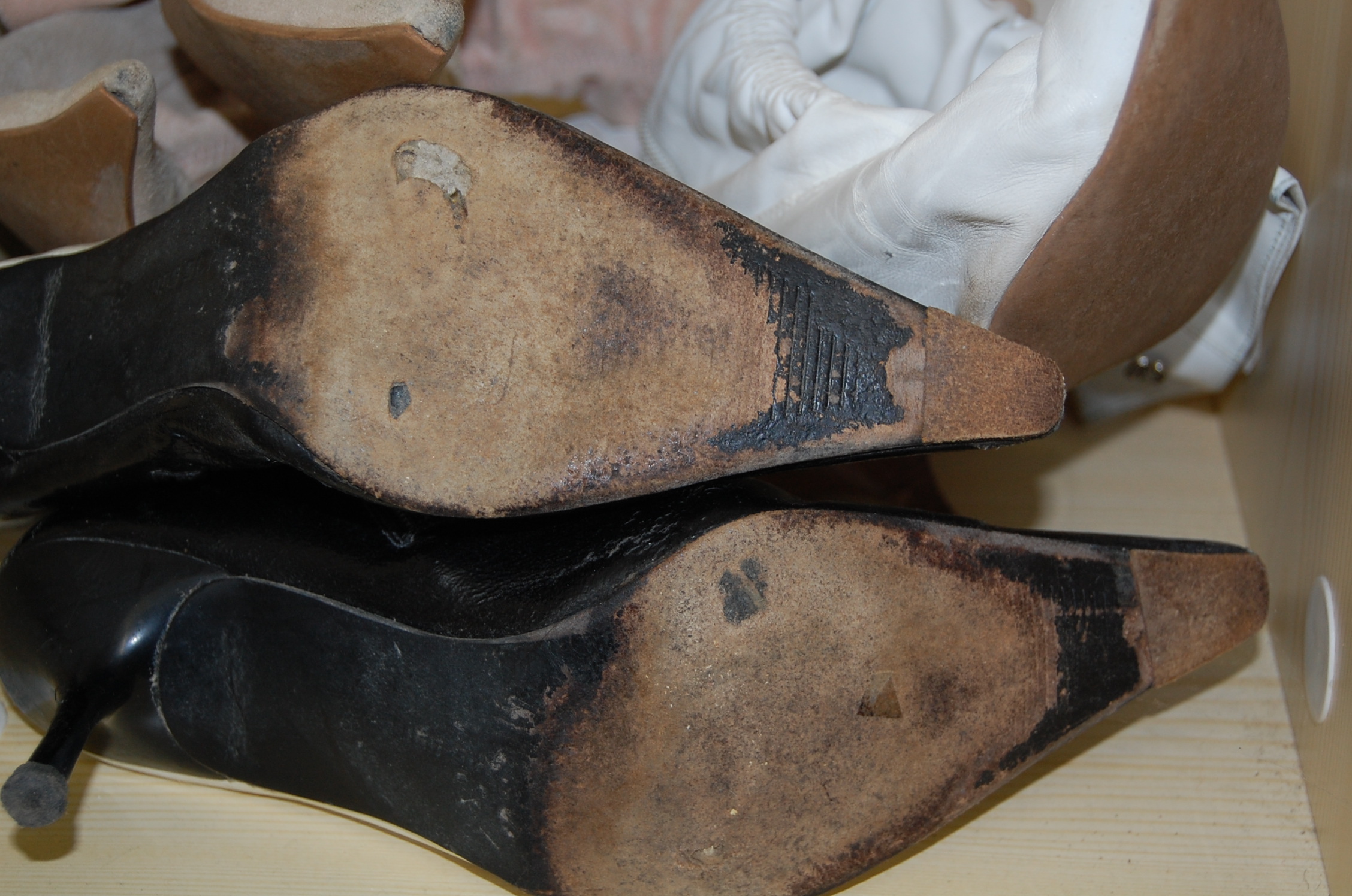 Mit Sicherheit für deinen Verwandten ein Augenblick mit großem Herzklopfen. Ähnliches Herzklopfen verspüre ich bei dem Anblick von herrlich ausgelatschten und mit Leidenschaft getragenen superspitzen Wildlederstiefeln. Besonders fällt mir das eine schon ziemlich fertige Paar mit den Messingabsätzen auf. Leider habe ich noch nie dieses geile rosa Stiefelmodell von einem netten Mädels entsorgen dürfen. Da hätte ich soviel tolle Ideen