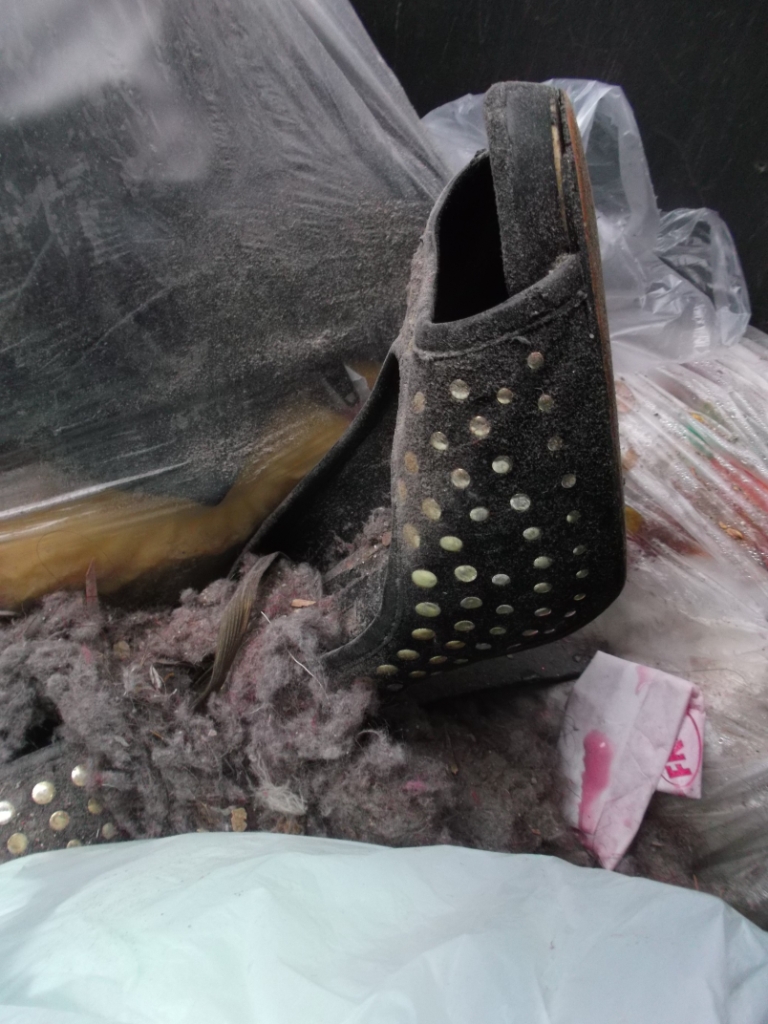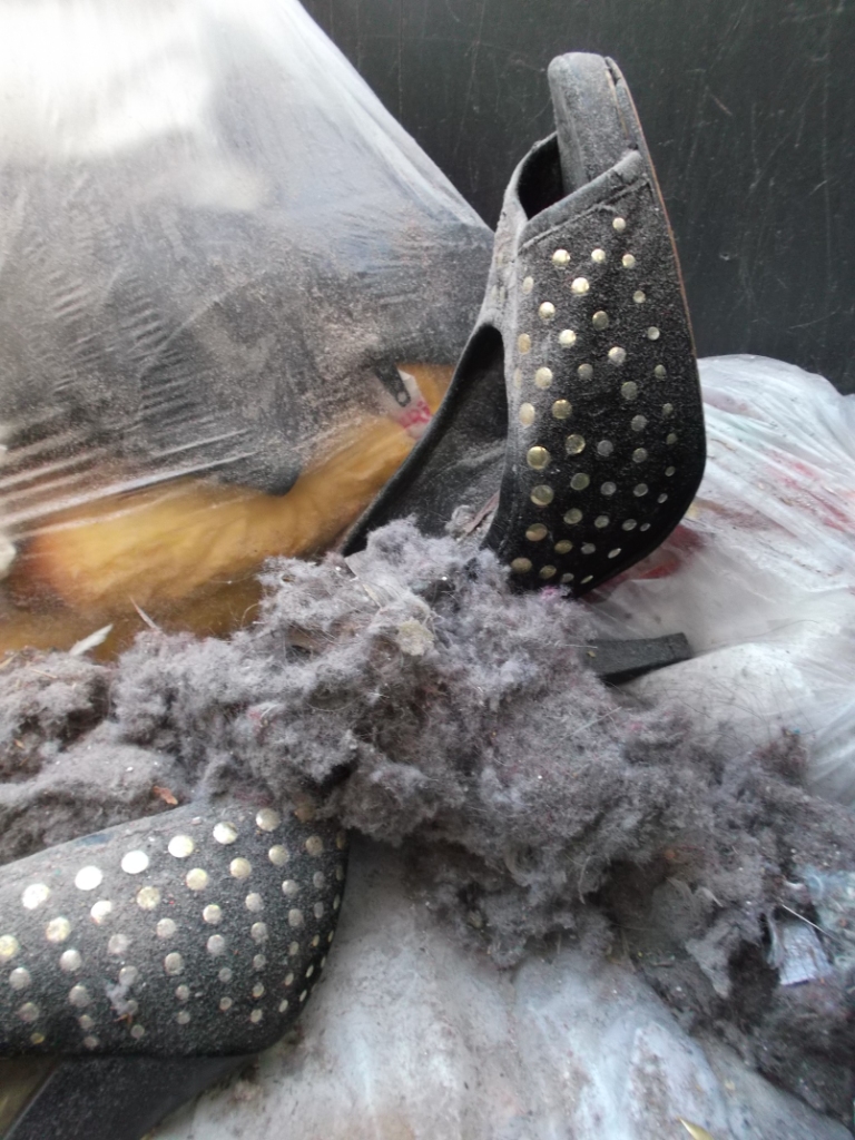 die Buffalo-Nieten-Pumps waren nun wirklich versiffter Restmüll, doch es sah so aus, als wollten sie "zeigen", dass sie sich mit ihrem Müll-Schicksal nicht abfinden wollten: :o