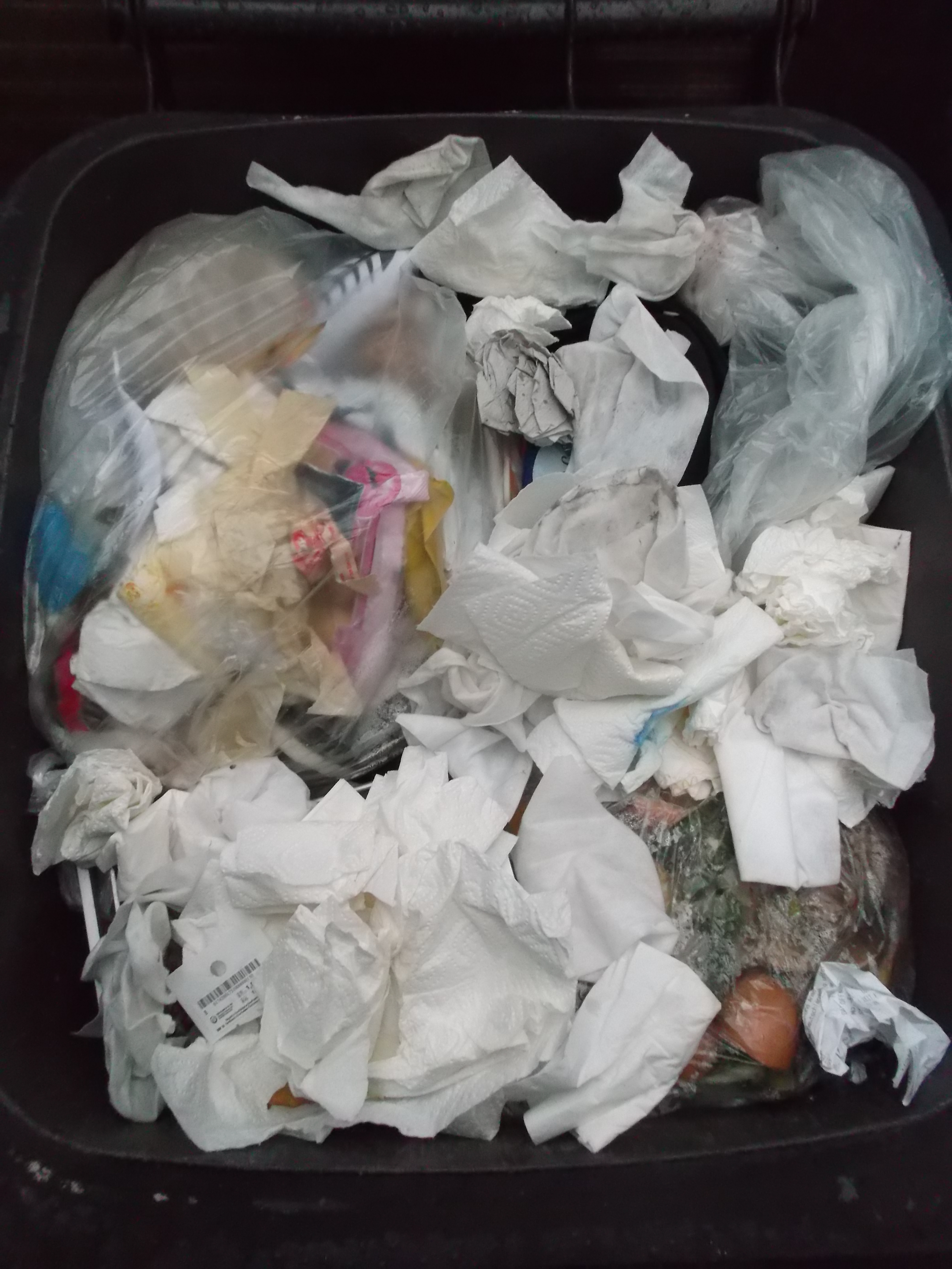 Noch schnell die verrotzten Taschentücher von der "verschnupften" Tamara in die Mülltonne werfen, bevor die Müllabfuhr kommt. Weg mit den Bazillenschleudern!