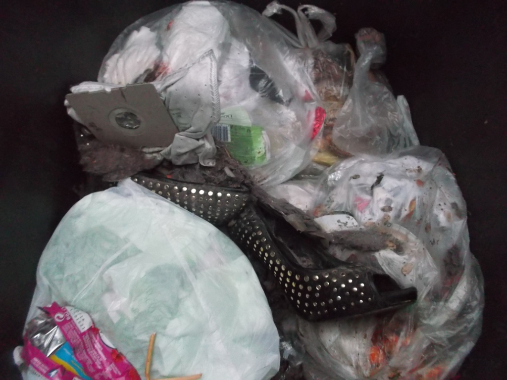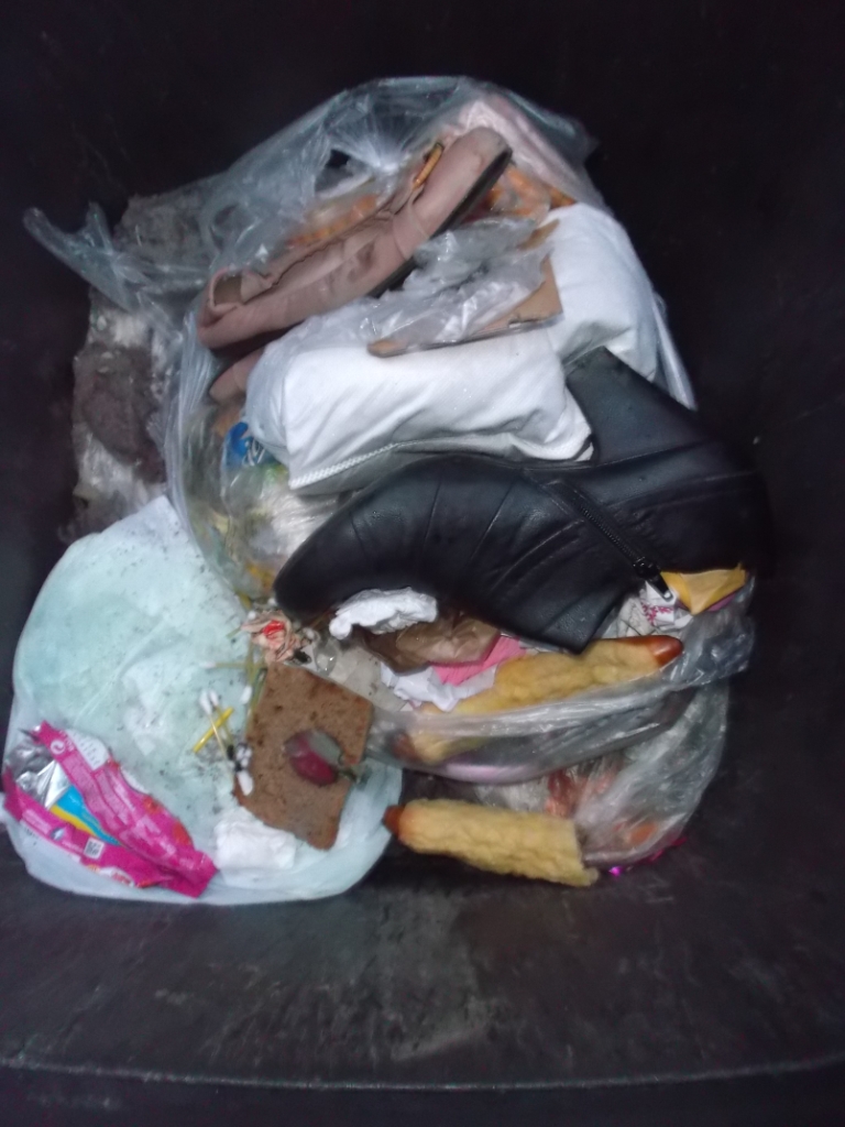 Beinahe "sauberer" Hausmüll; - wenn da der eklige Müllgestank nicht wäre, der natürlich ins Leder eingezogen war. Puuh!