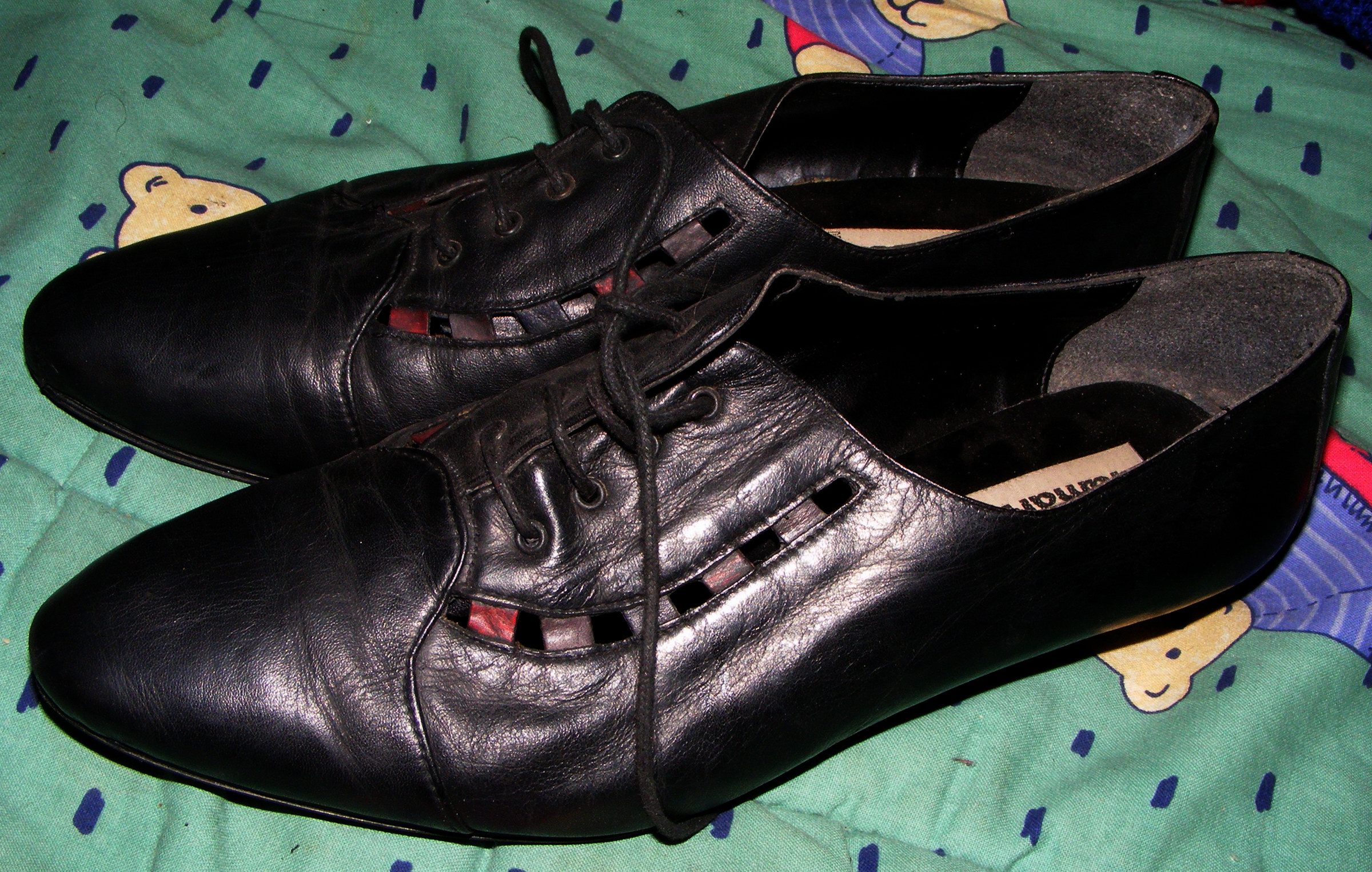 Ebenfalls GARANTIERT NICHT IM MÜLL landen diese ausgemusterten Lederschnürschuhe, die der liebevolle Papa der Vorbesitzerin für mich "gerettet" hat. :P