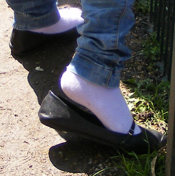 Dazu erscheinen mir Ballerinas auch als nicht besonders geeignet, und weiße Söckchen erst recht nicht!