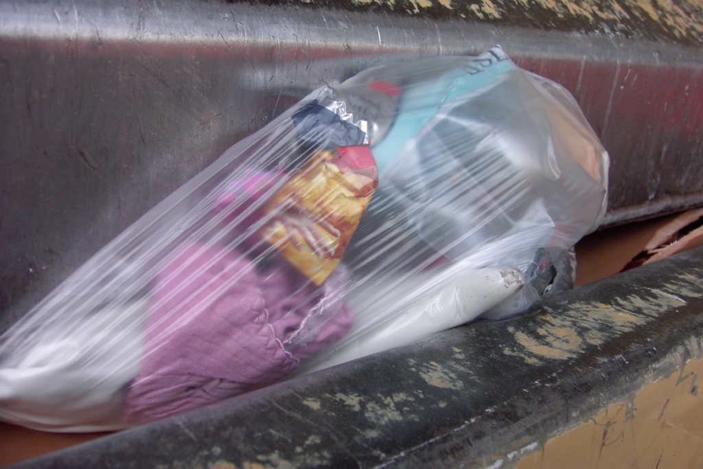 Lasch hing der Lumpen-BH meiner Bekannten über dem Warnschild "Nicht in die Schüttung greifen!"