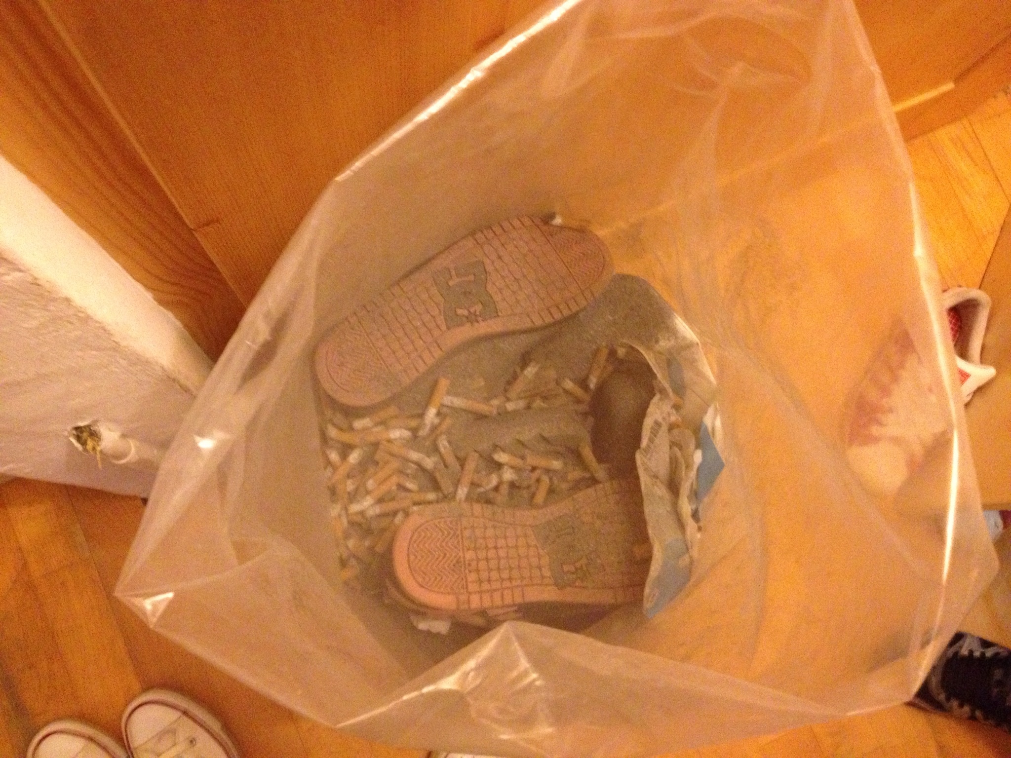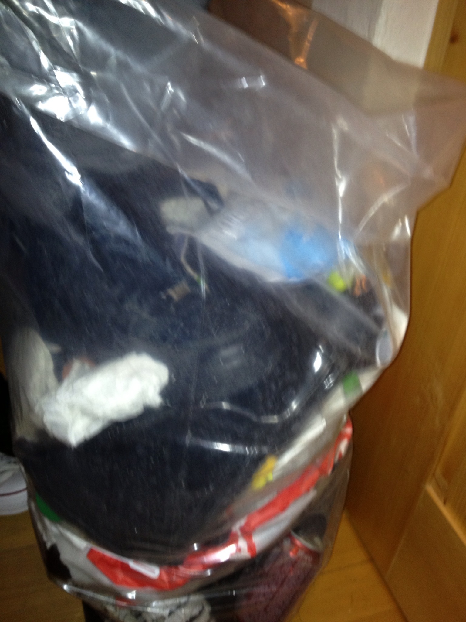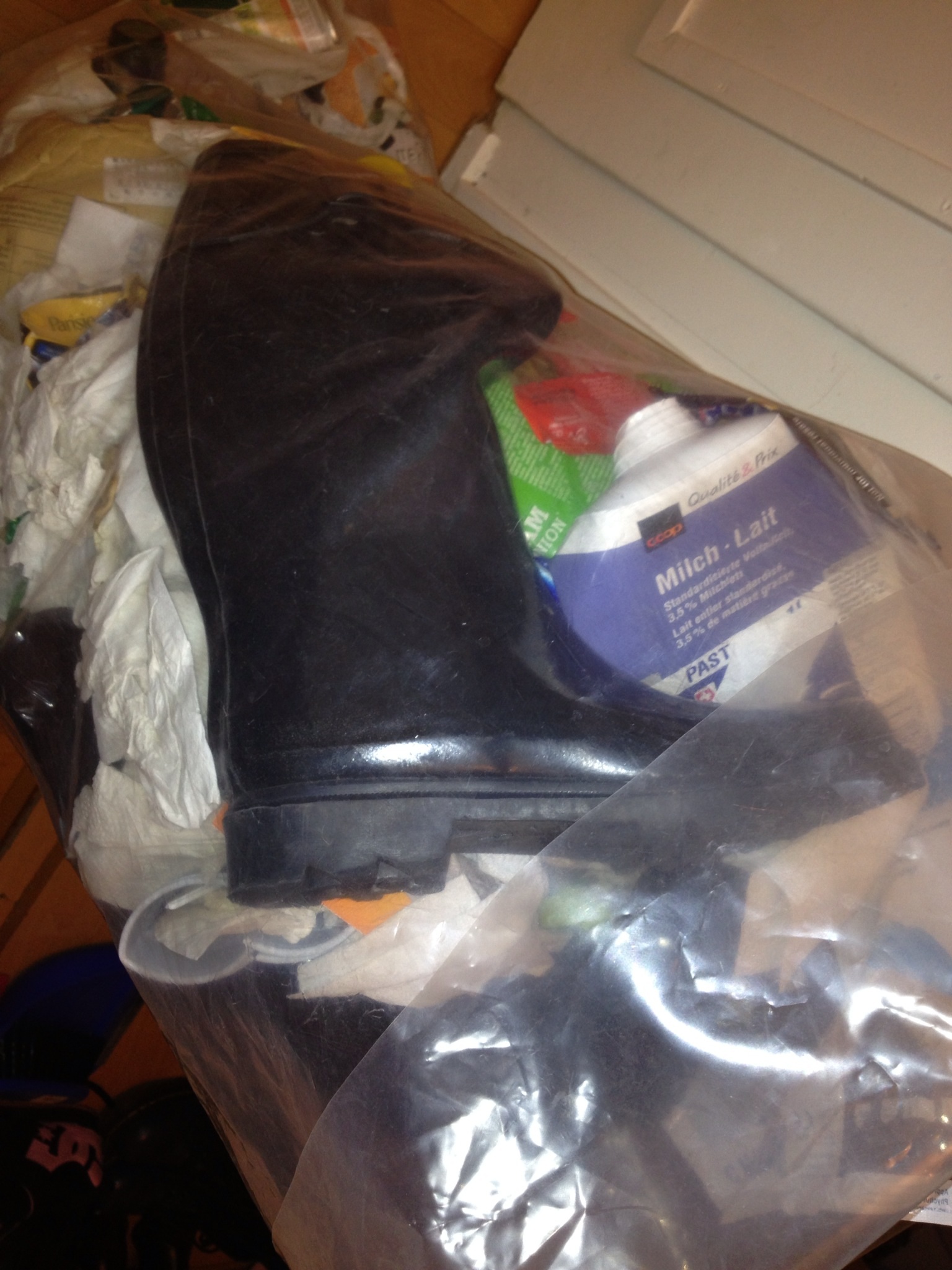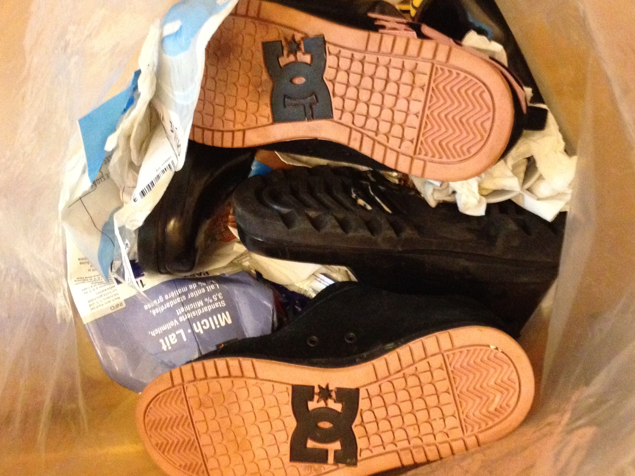 Re: ausmisten, schuhe mit müll zusammen in den beutel.