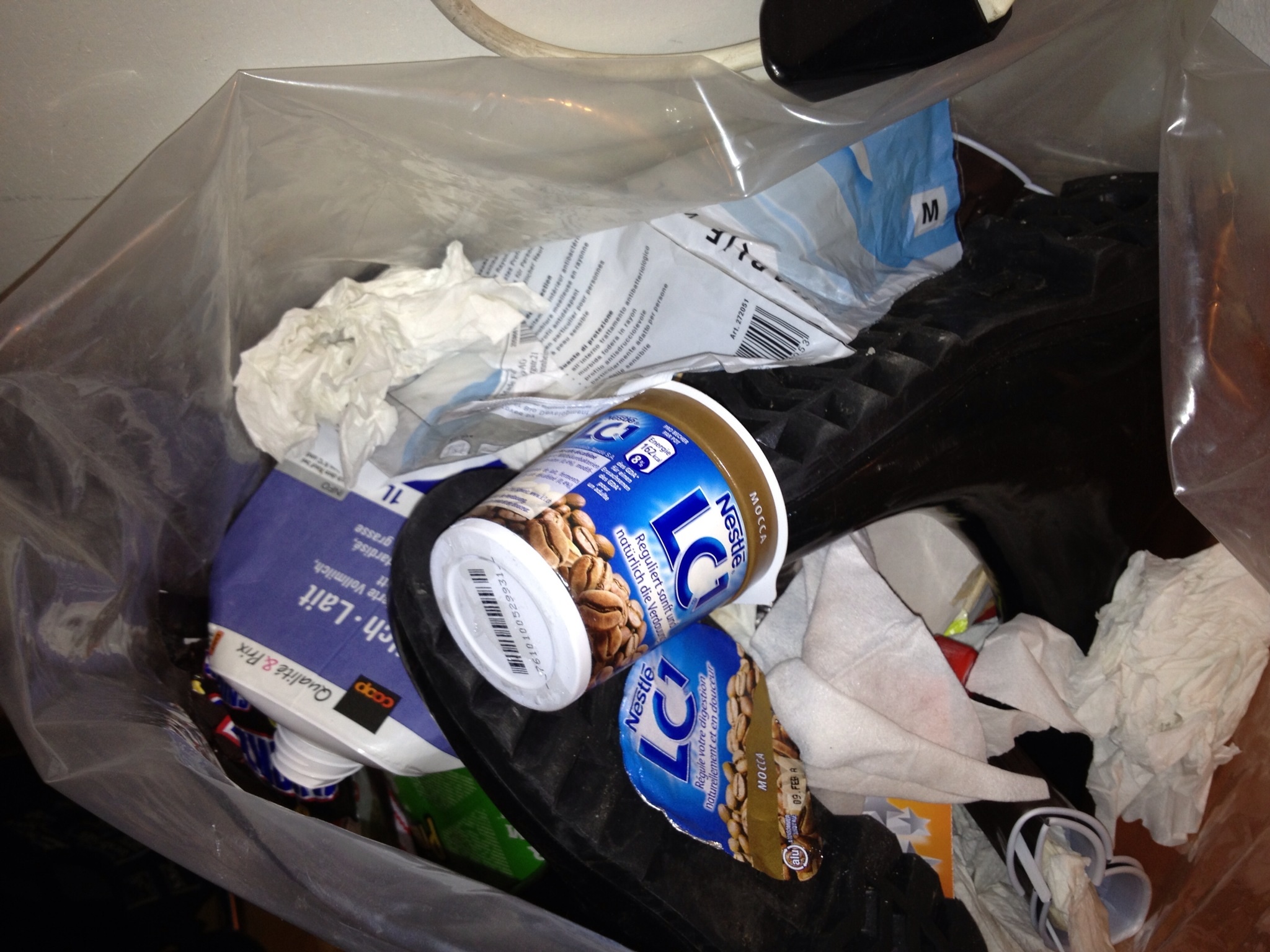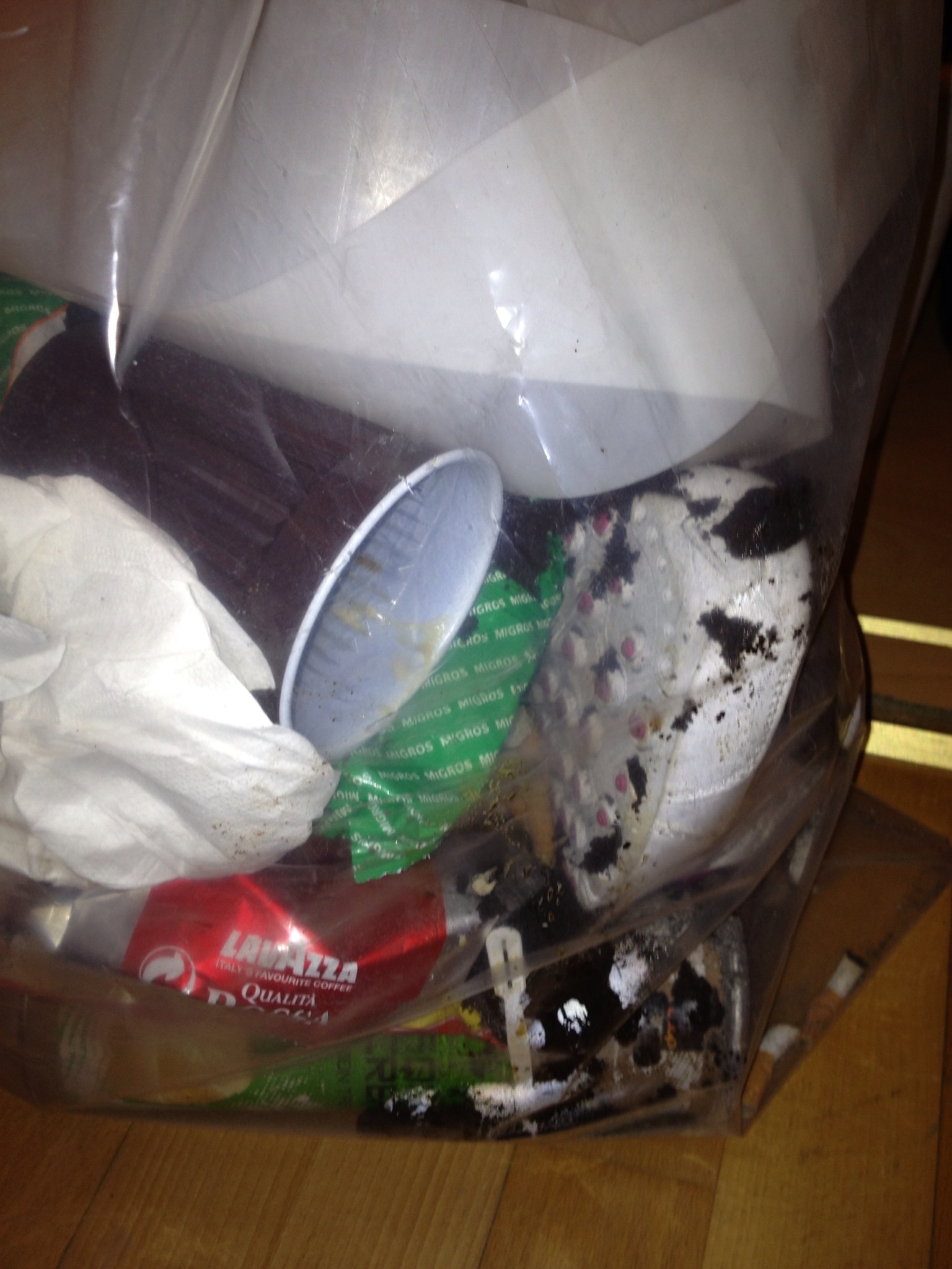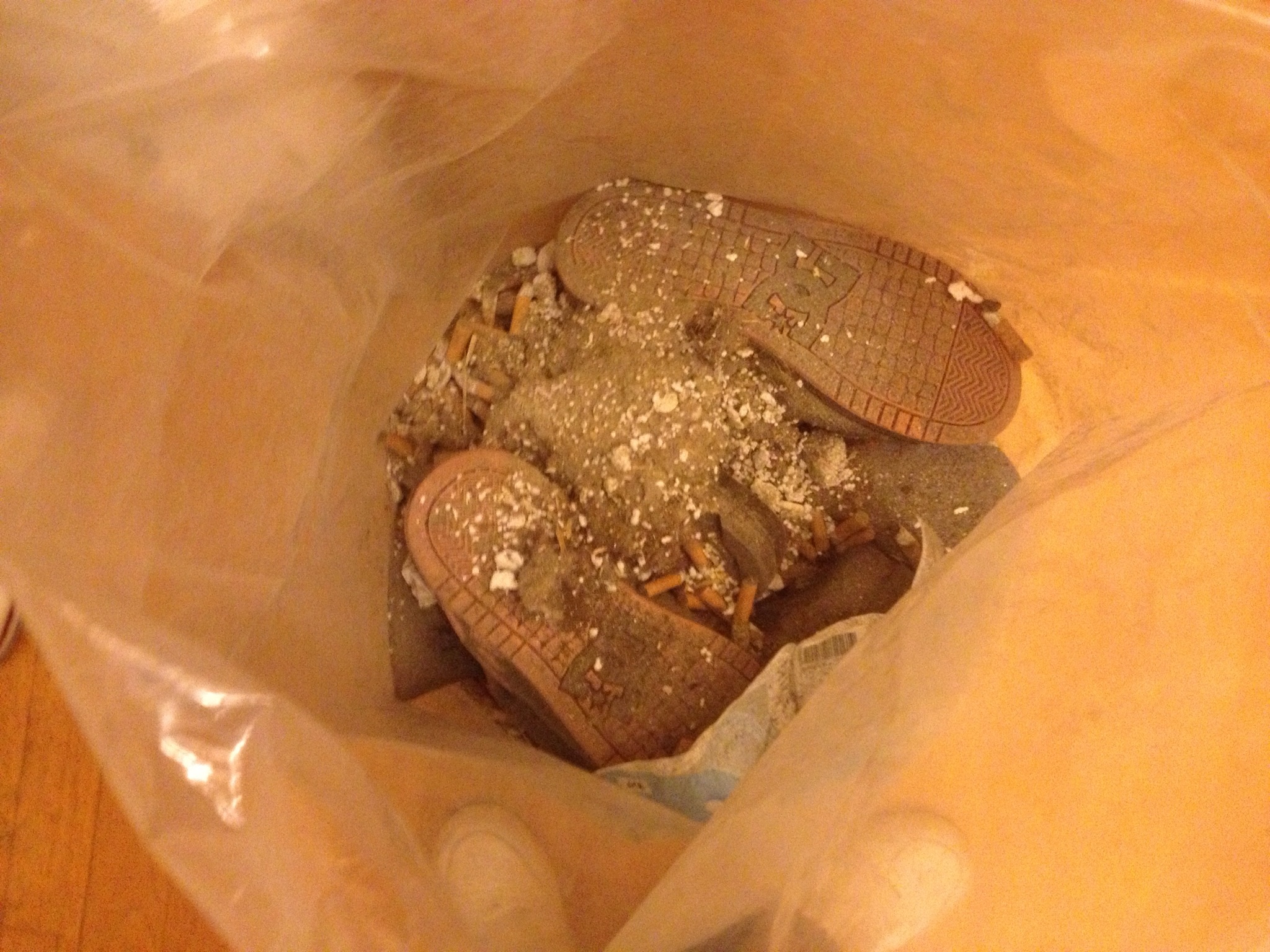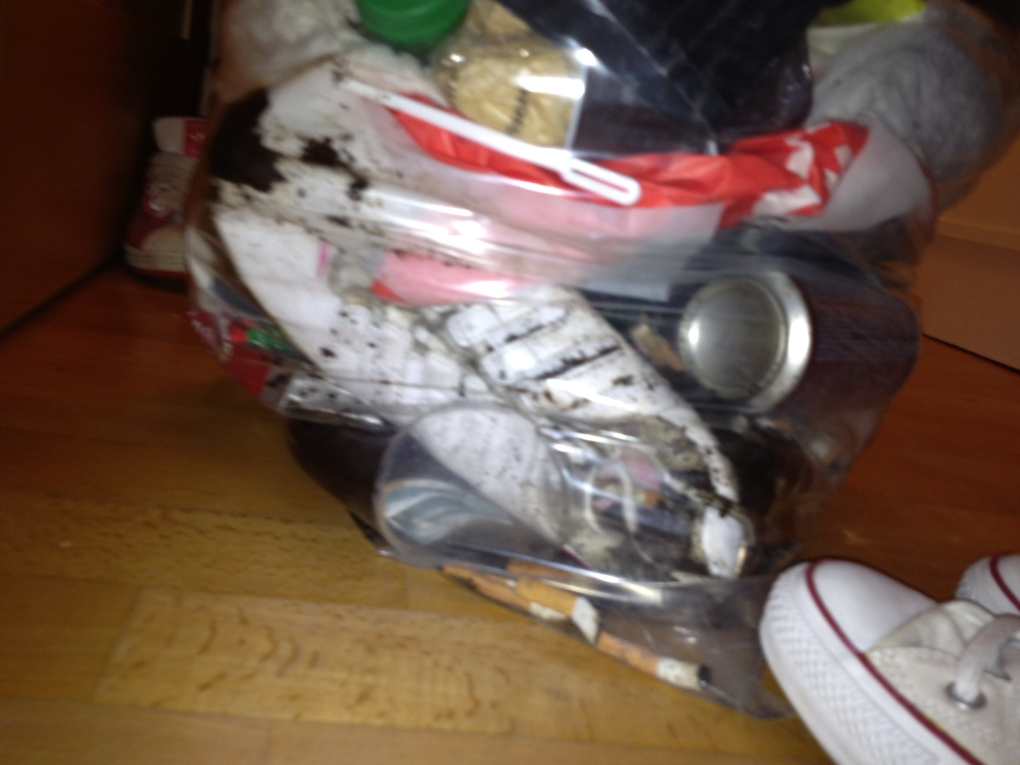 Re: ausmisten, schuhe mit müll zusammen in den beutel.