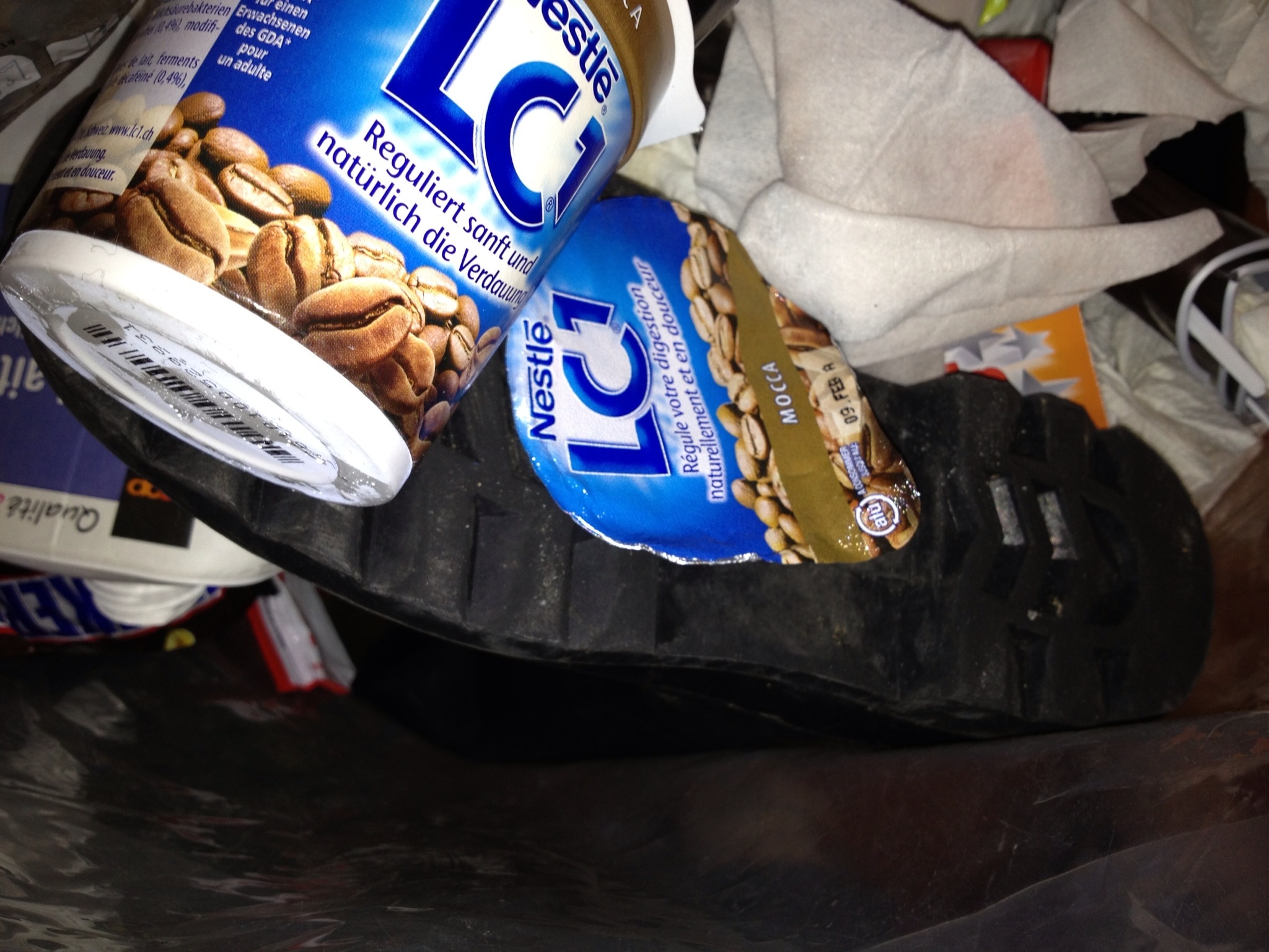 jetzt wirds eng. da muss doch noch mehr dreck platz haben und die guten nikes sorgen für platz. aber nur auf einer seite wird platz geschaffen, unten wird es um obig gewonnen raum enger.