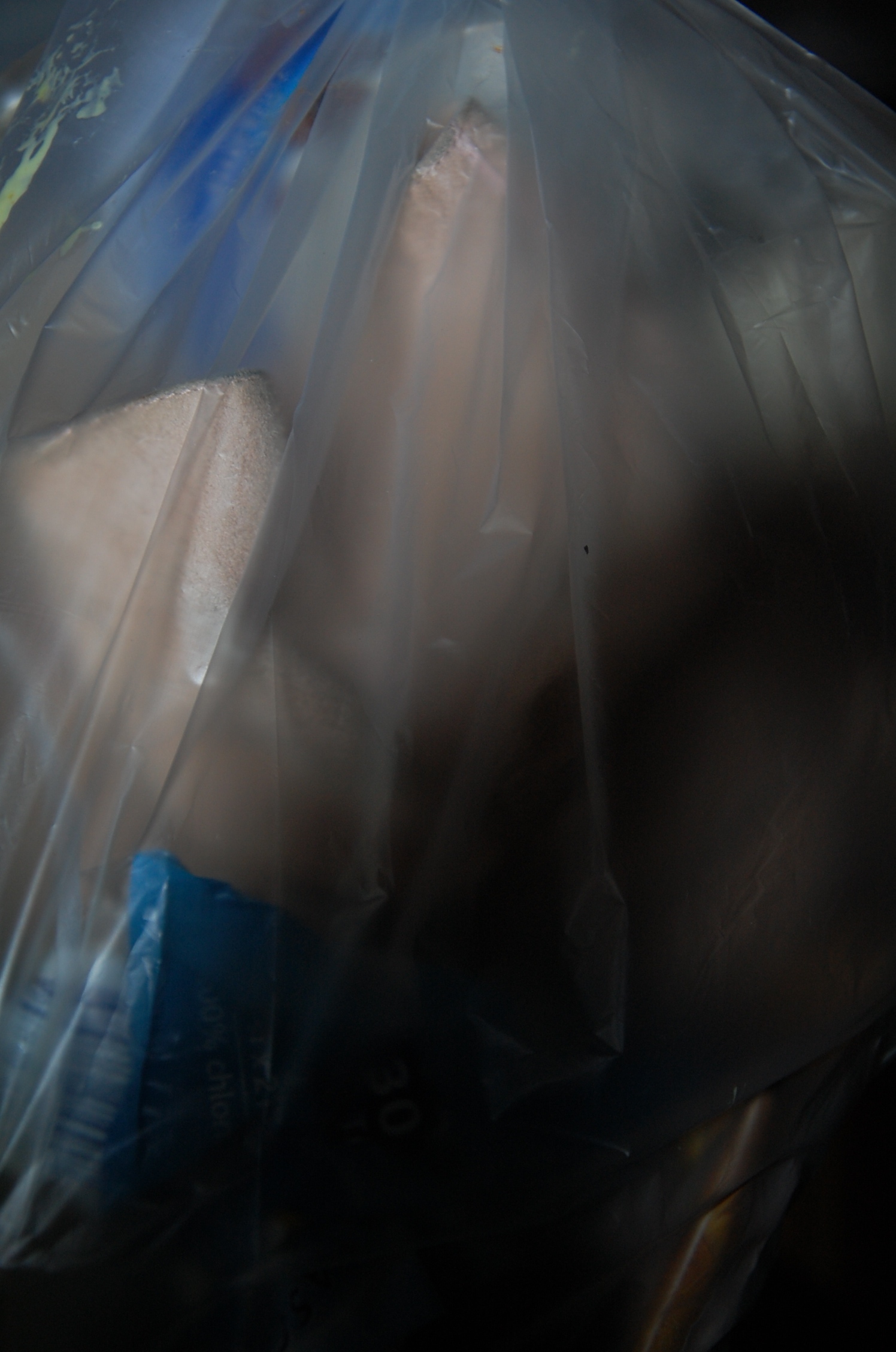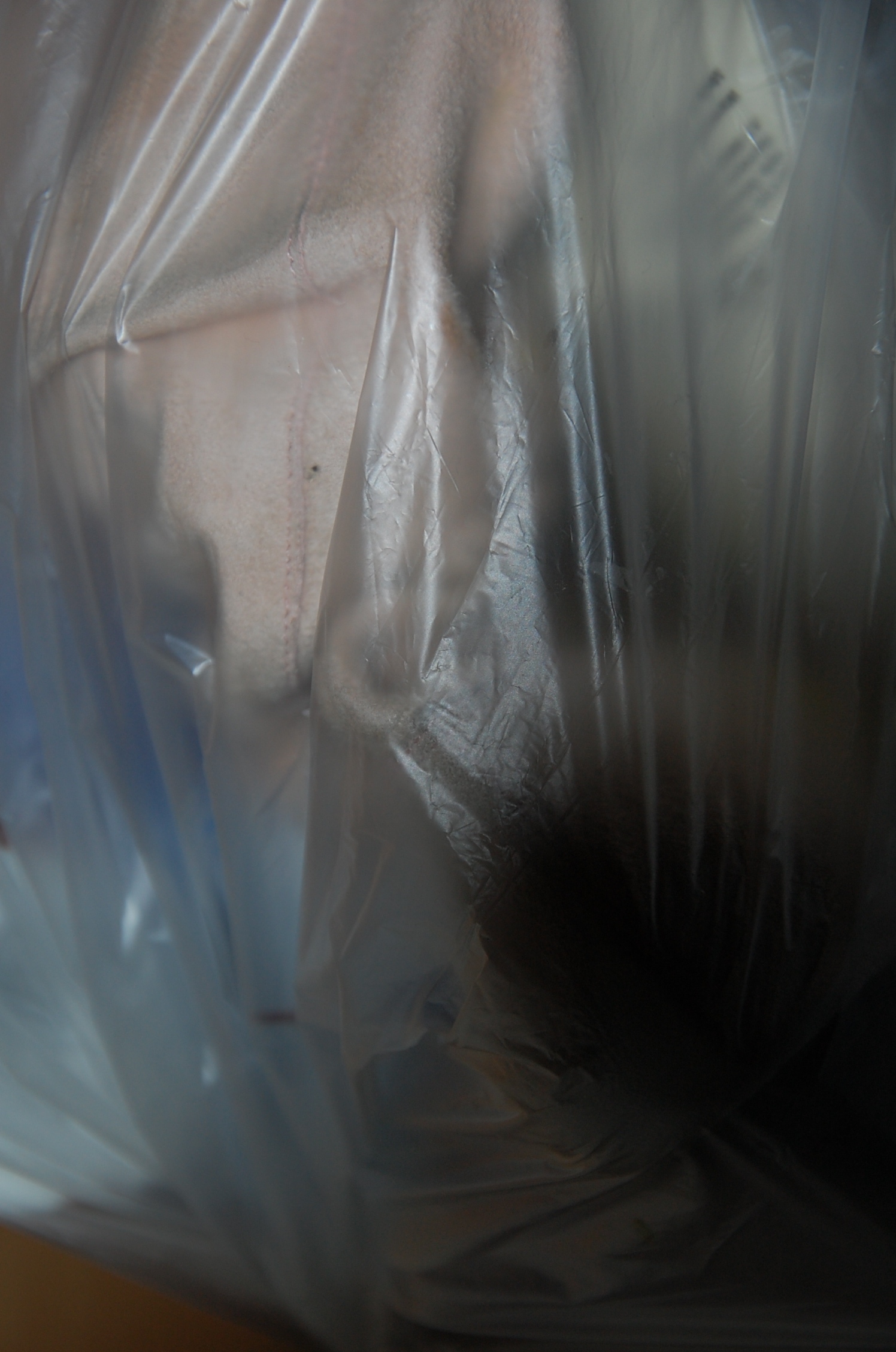 Mein Freund (Ist er das auch noch weiterhin? Ich habe im Augenblick keine Ahnung.) hält in der Wohnung noch Ausschau nach weiterem Müll. Er findet nichts mehr. Jetzt hängt es auch die zweite Lausche über die Klinke. Der Inhalt des Beutels wird dabei zusammengedrückt. Die Vorstellung, wie meine Stiefel nun völlig vom Dreck versaut werden, gefällt mir überhaupt nicht. Viel schlimmer kann es nicht mehr kommen.
