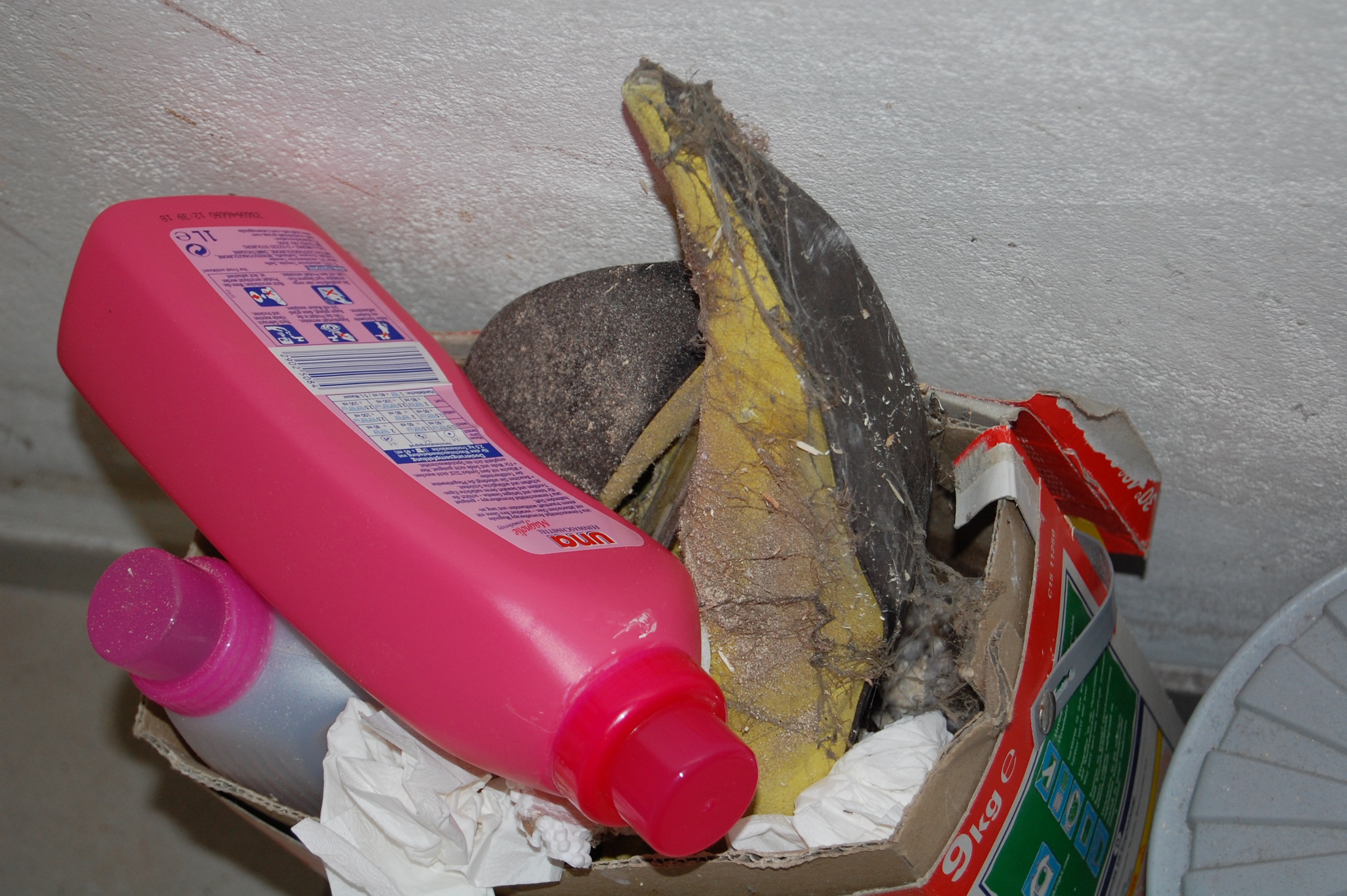 „Ich räume gerade die Küche auf. Hier, die Sachen von gestern Abend wollte ich gerade in den Müll werfen. Aber die alten Stiefel waren Kurz im Weg im Mülleimer“ Glaubst du das, was du da gerade hörst, Pinkmarie?