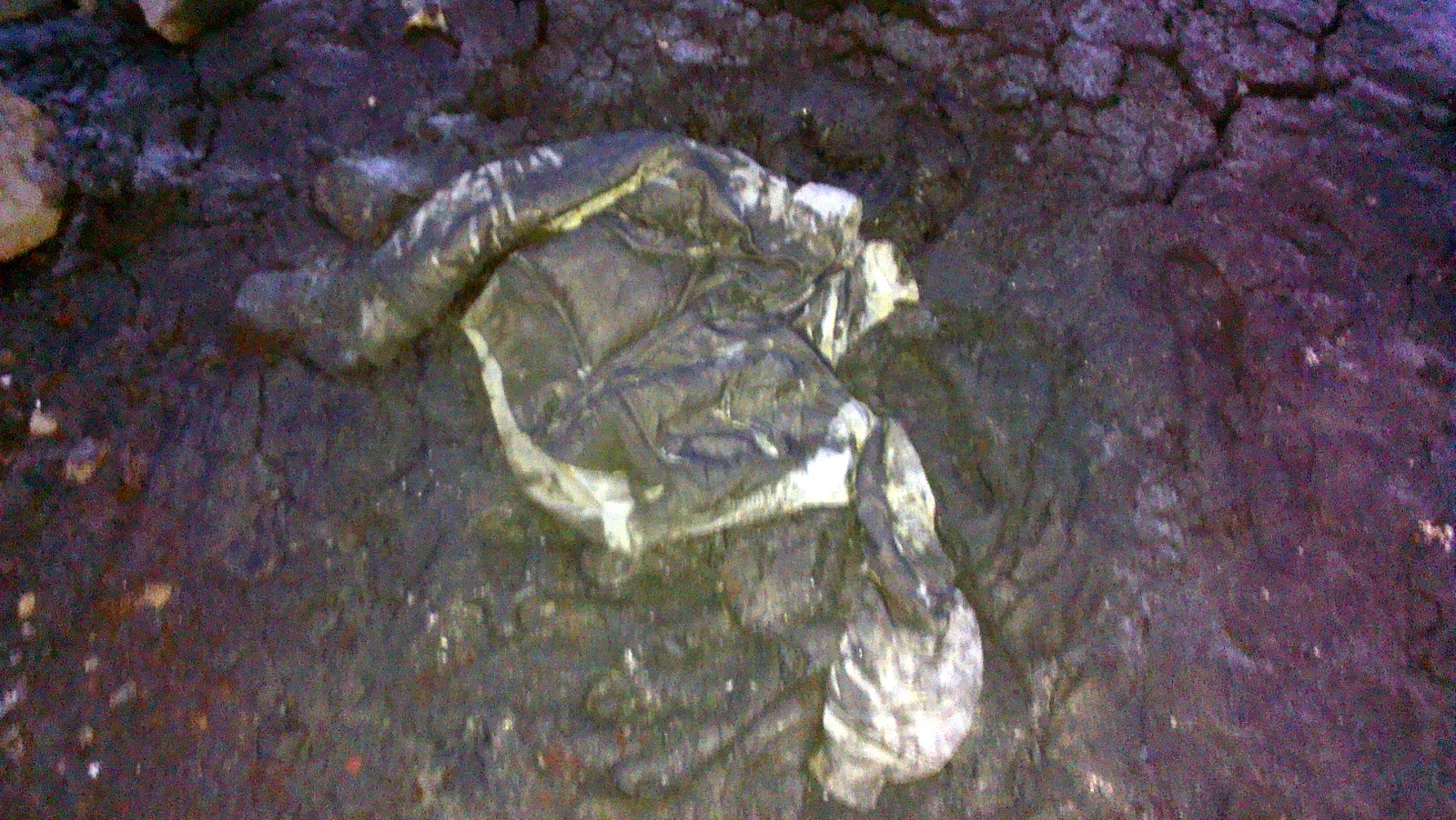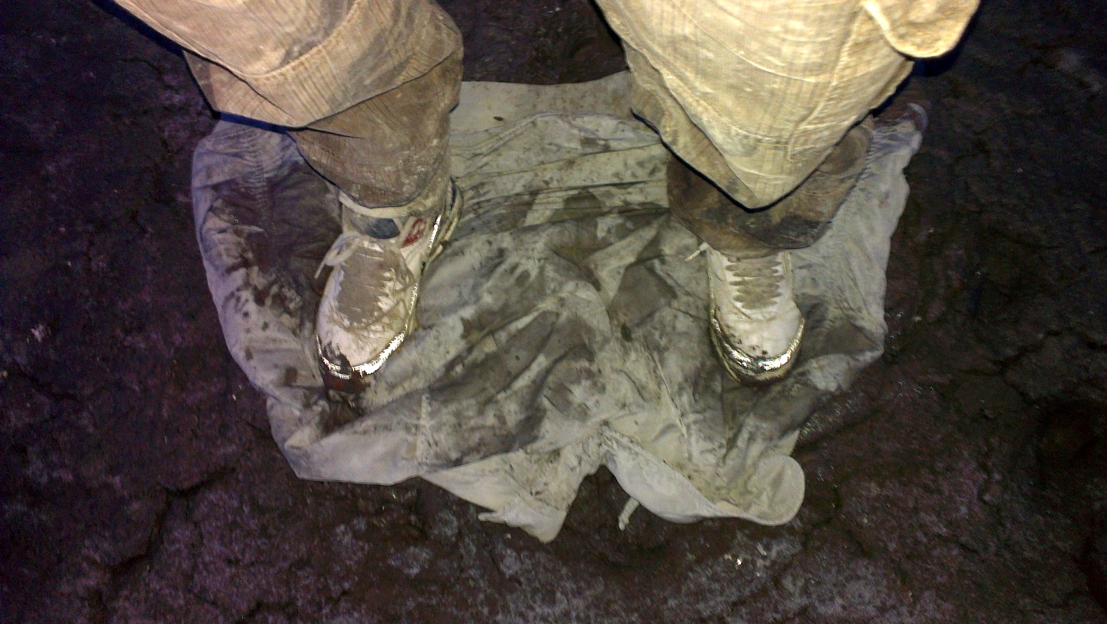 Etwas weiter gabs noch ne Stelle mit noch nicht abgehärtetem Beton. Da liegt der Lumpen doch gut drin.