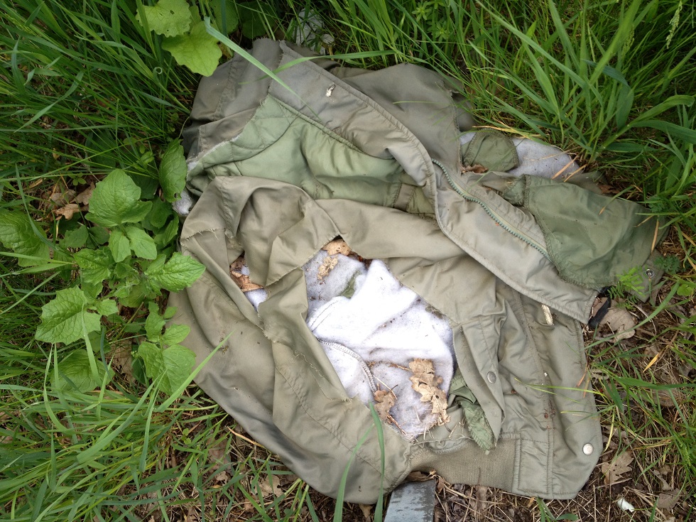 Mit der Alpha Bomberjacke auf der Bauschuttdeponie zum Schutt entsorgen. Na ja eigentlich war die Arbeitsjacke ja noch zu gebrauchen, aber was solls weg damit.
