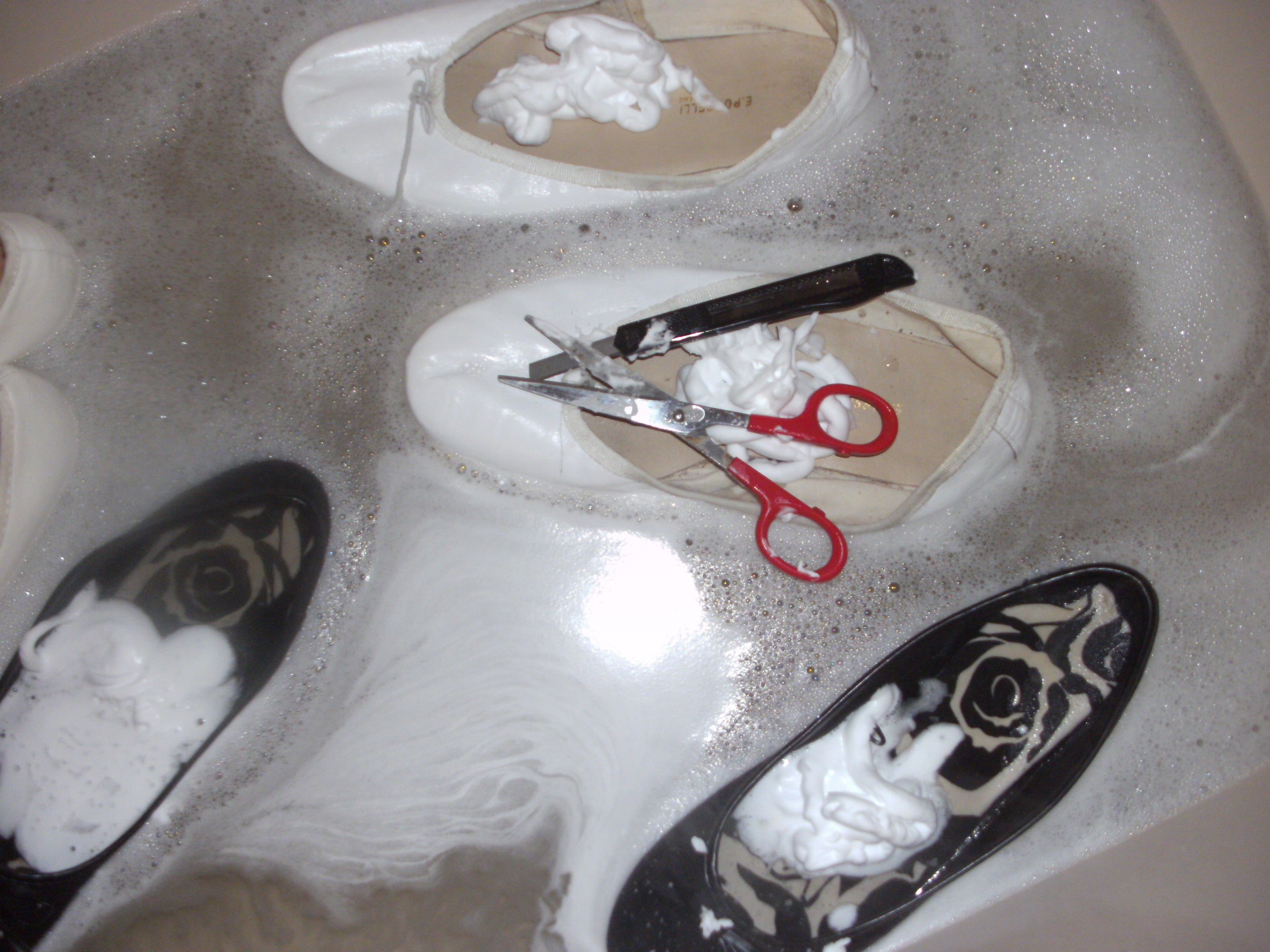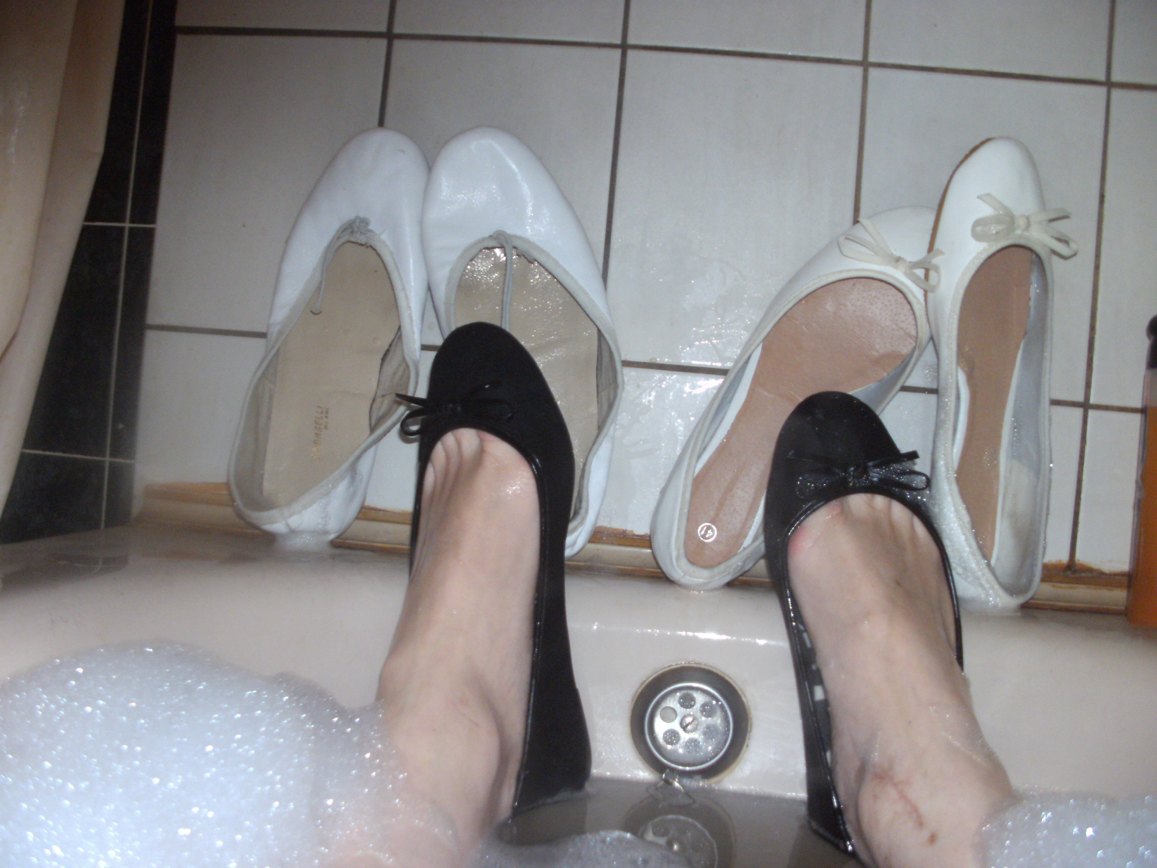 Nasse Ballerinas in der Badewanne