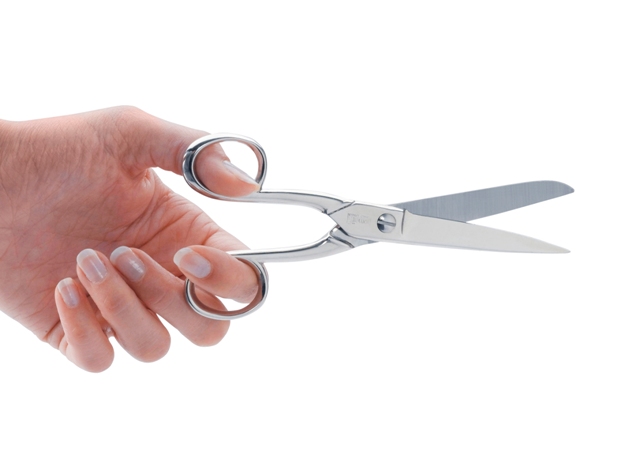 Ich werde mit der Schere in meine schöne teure Hose geschnitten.