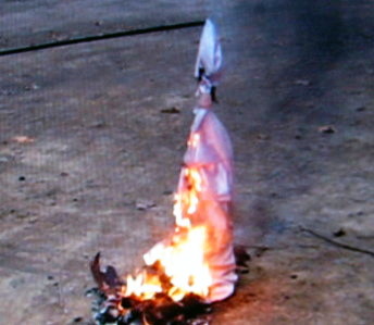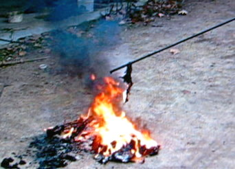 Oh Schreck, jetzt lässt sie ihn ins Feuer fallen