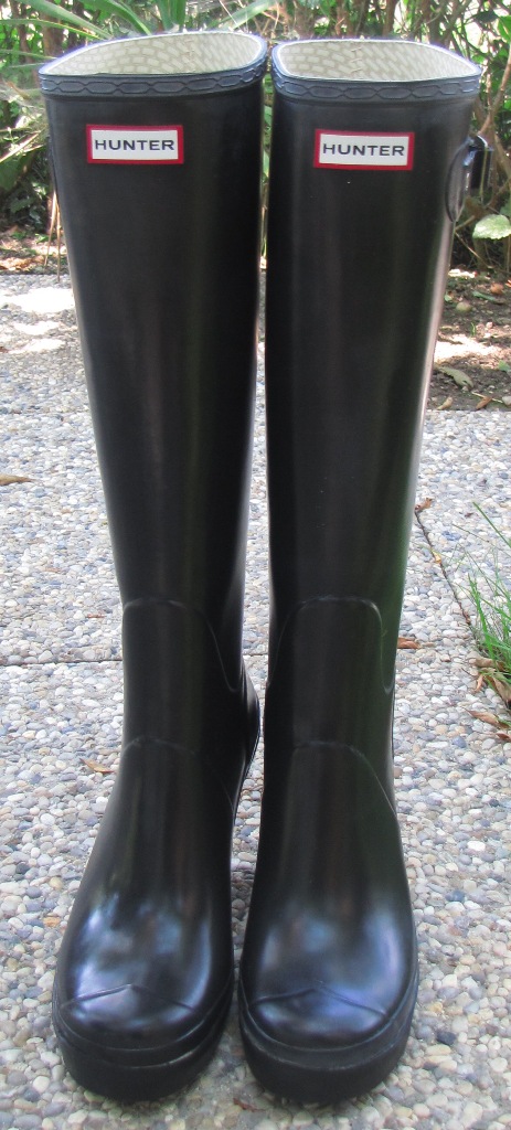 Da die Farbe für mich doch etwas zu gewagt war, habe ich mir noch schwarze Hunter tall gloss zugelegt. Auch tolle glänzende weiche Gummistiefel. Und meine Freundin hat es sich nicht nehmen lassen gleich barfuss reinzuschlüpfen :D