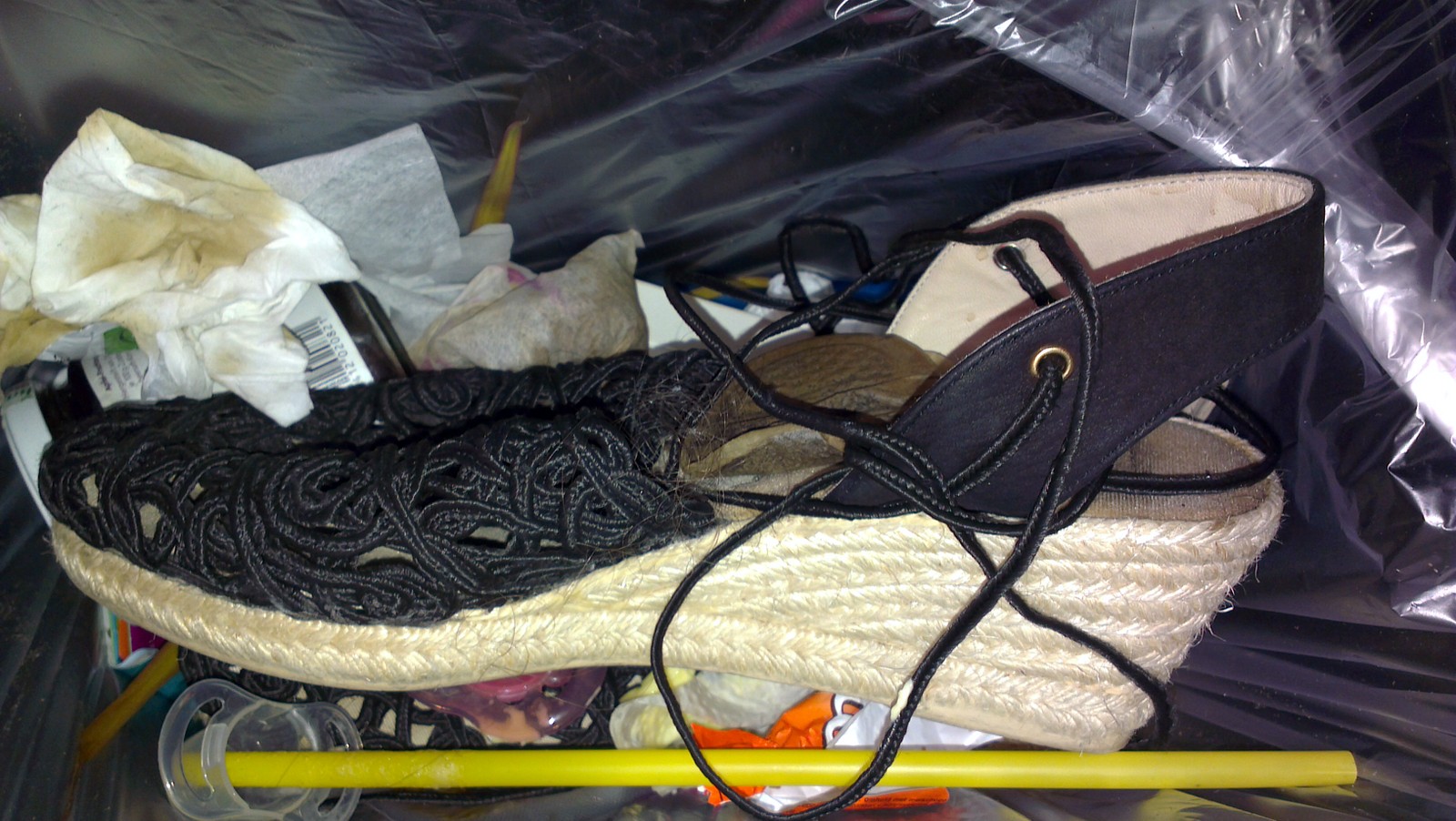 Keilsandalen in den Küchenmüll