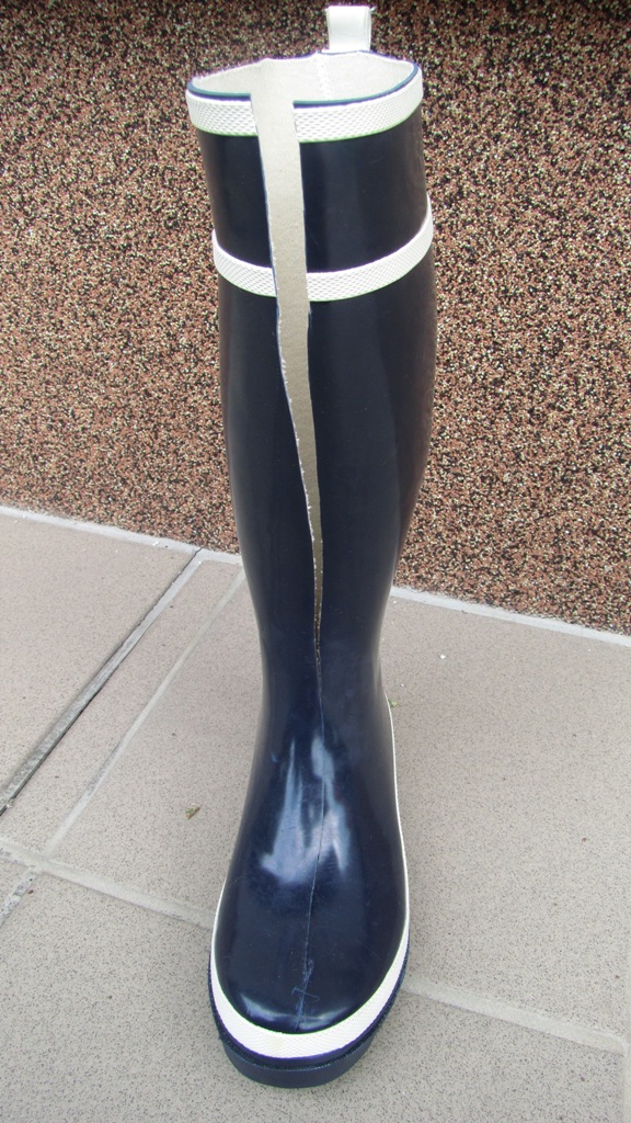 Schnitt für Schnitt merkte sie und es war als ob ihr eigenes Fleisch geschnitten wurde. Sie schaute runter auf ihr nacktes Bein und sah wie der Schaft des schönen blauen Gummistiefels langsam vorne der Länge nach aufgeschnitten wurde. Sie sagte noch oh nein meine schönen neuen Gummistiefel.