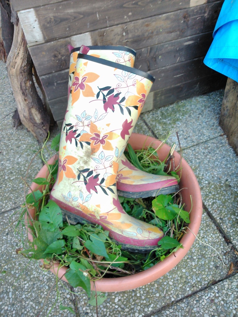Fas hier sind derzeit die Gummistiefel für die Gartenarbeit meiner Freundin