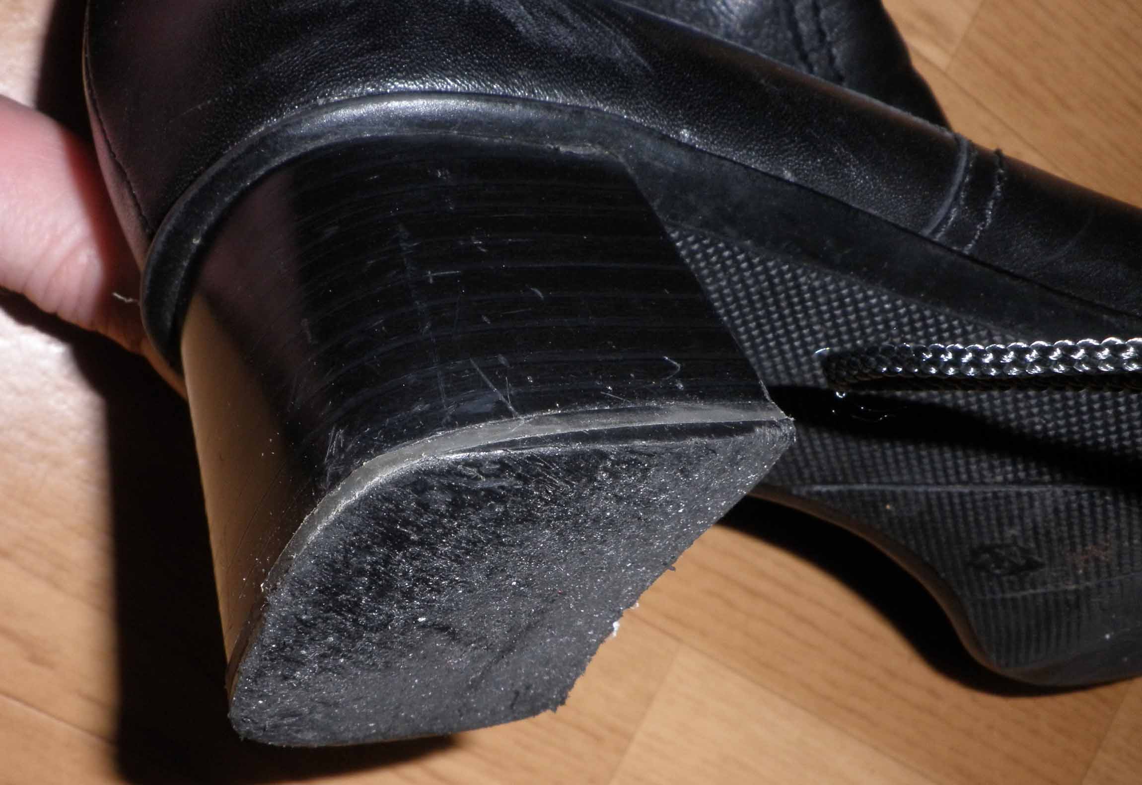Die Sohlen hatten etwas gelitten, der Absatz kommt seiner Tamaris Anti-schock-auflage auch bedrohlich nahe.