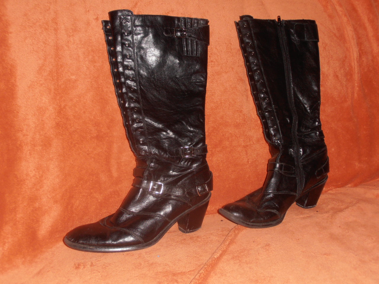 39 Lederreitstiefel, schwarz, gebrauchsspuren aber noch tragbar, .JPG