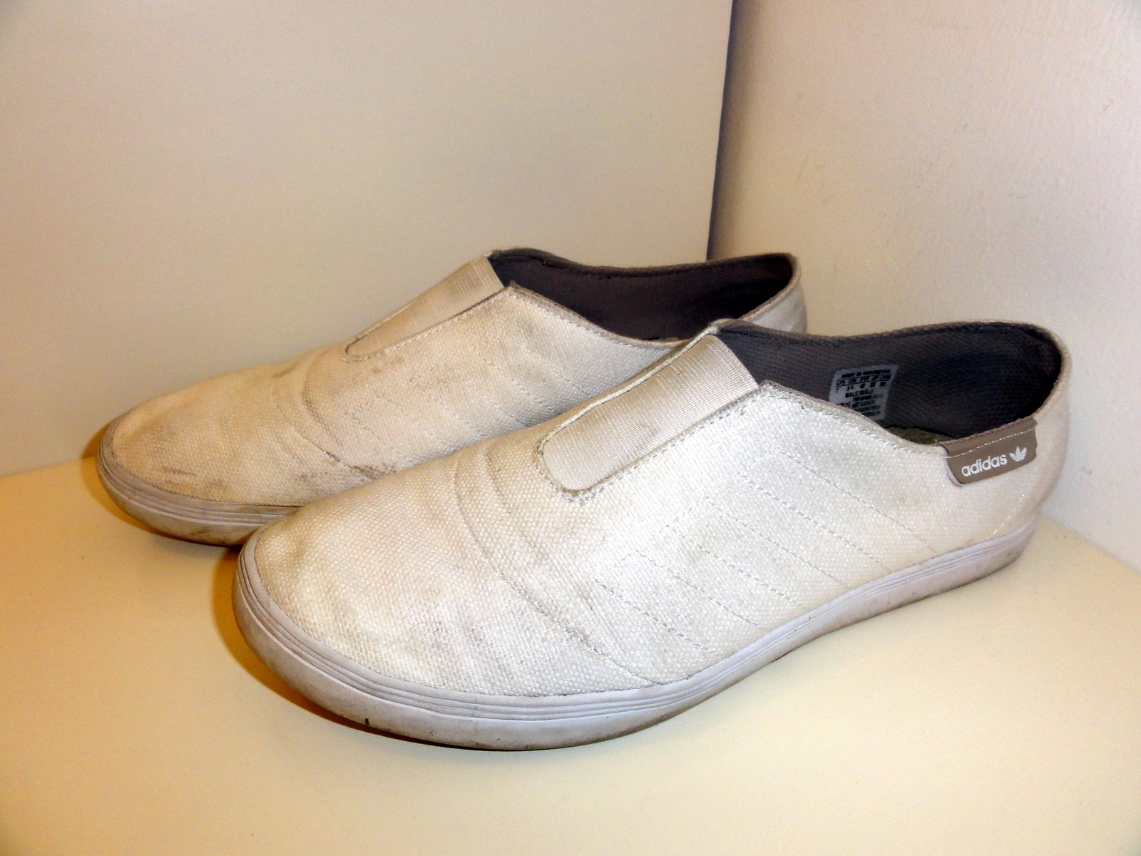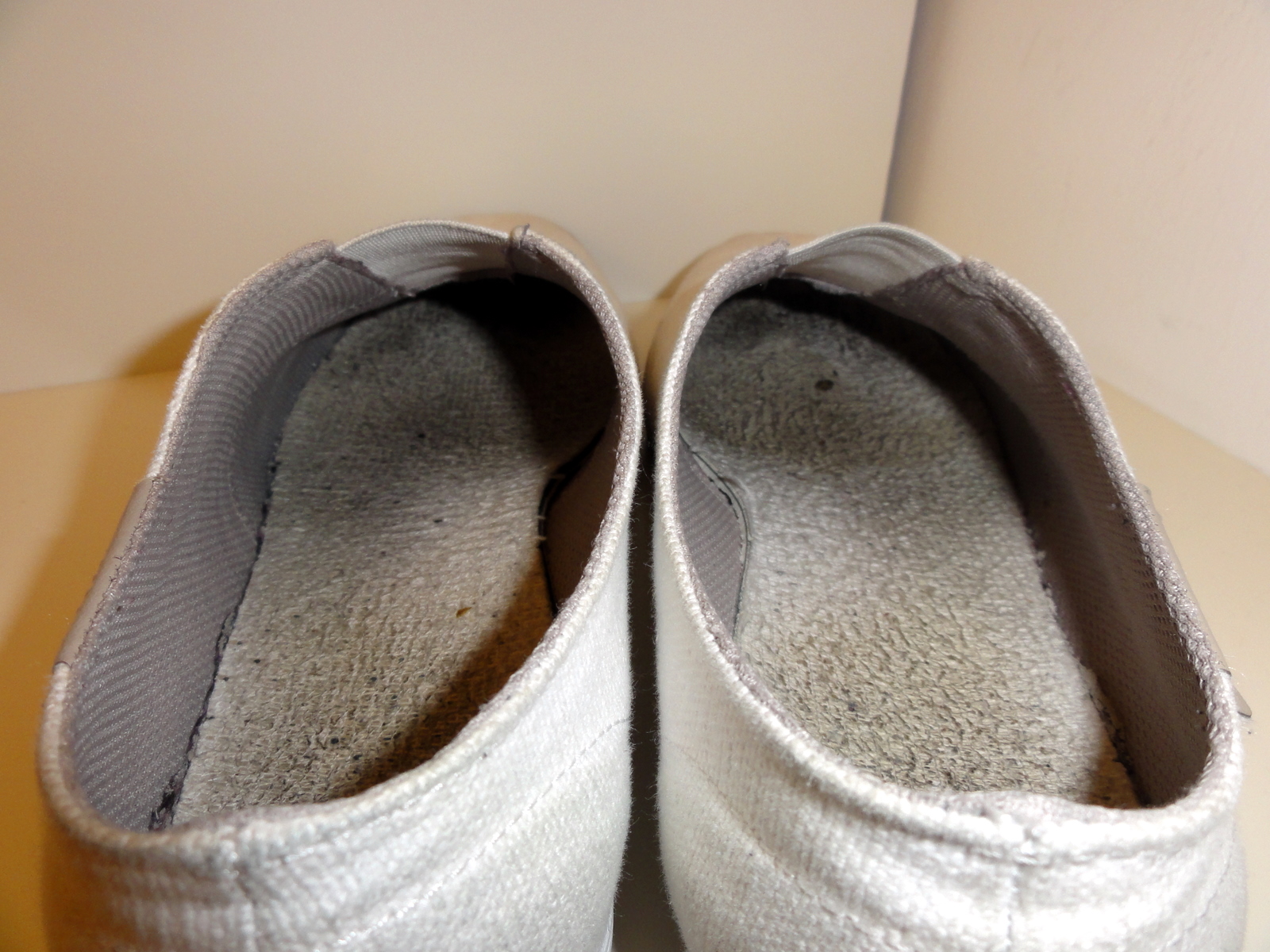 ...so sahen die Teile vor einiger Zeit aus, als sie noch nicht hinten aufgerissen waren. Ist Gr 39-40 - und stinkt ziemlich, da sie die dauernd barfuss getragen hat...