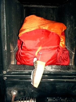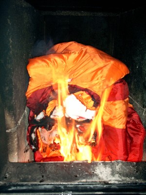 Ich liebe es, Nylonjacken zu verbrennen, die lassen sich so einfach und sicher für ein schönes Lagerfeuer anzünden, die brennen so leicht und schmelzen so herrlich, wenn die Flammen sich durch das Nylon fressen.