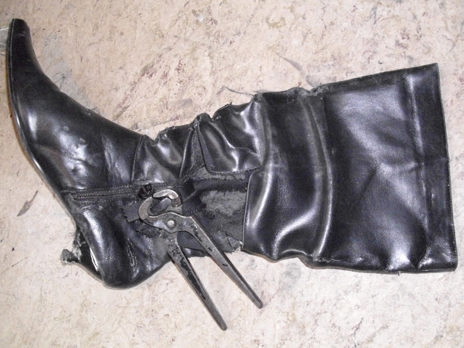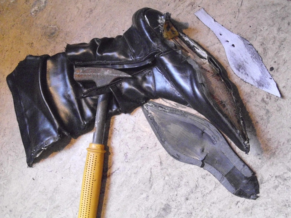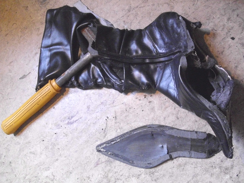 Der Stiefelschaft wurde schon teils "enthäutet".