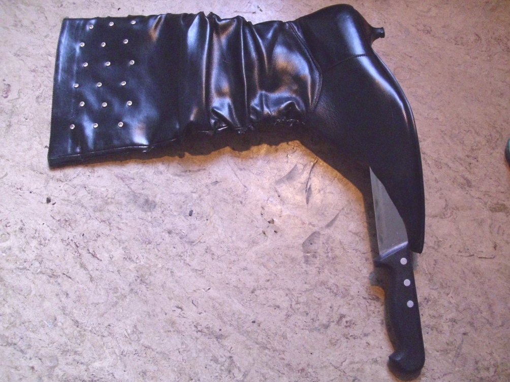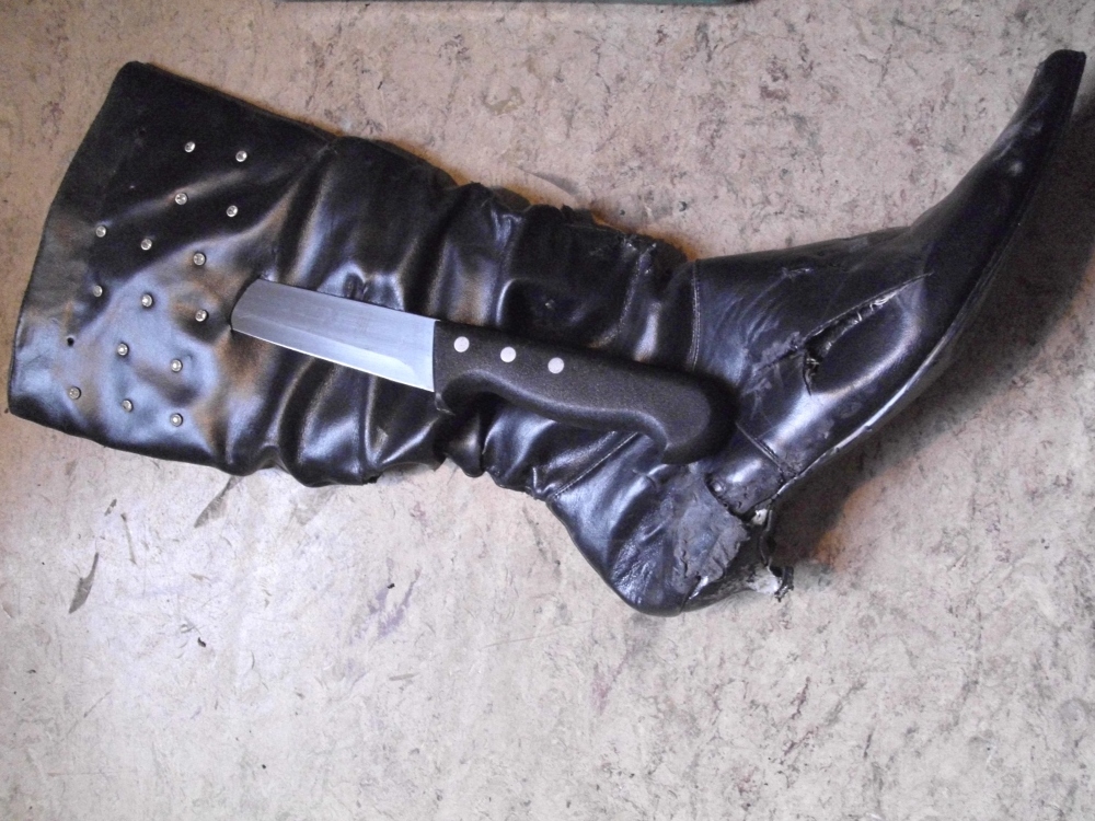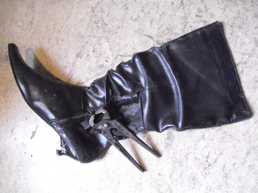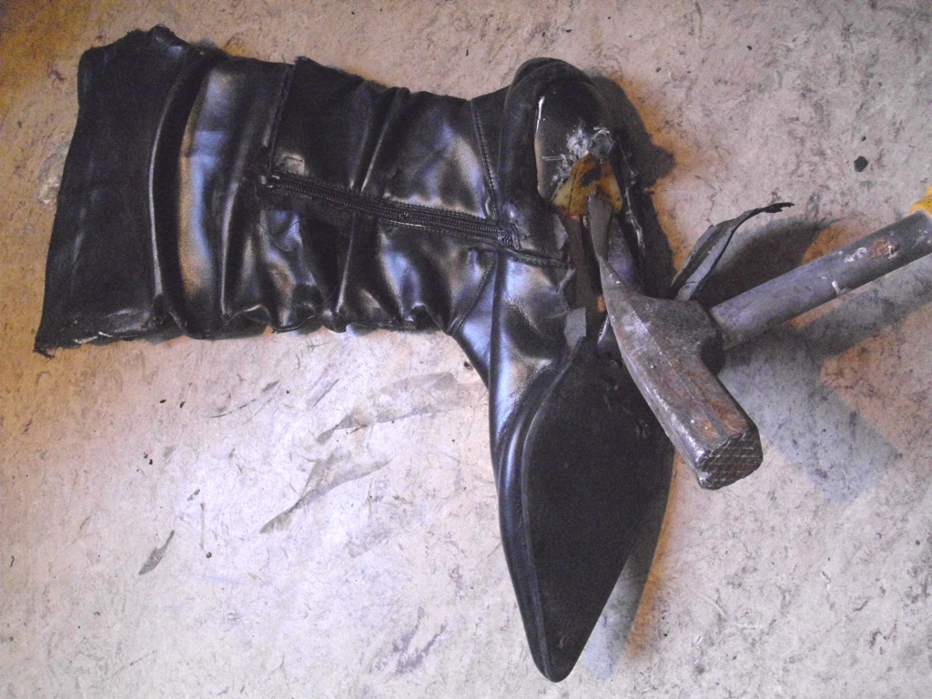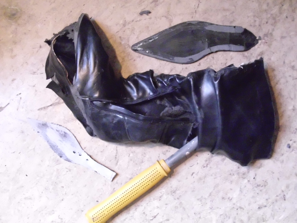 ích habe auf einem Flohmarkt ein Paar geile Stiefel erstanden und leider hielt meine Freude nicht das, was sie anfangs versprach: Das Obermaterial wurde trotz tollem Zustand schon mürbe. Die Stiefel waren untragbar und dennoch einfach ein geiler Anblick. Allerdings hatten sie sich auf diese Weise meiner Meinung nach noch nicht einen Aufenthalt in der Mülltonne verdient. Lange schob ich sie hin und her, bis mich Marina darum bat, sie vor ihren Augen zu schlachten. Damit war das Schicksal der geilen Stiefel besiegelt: