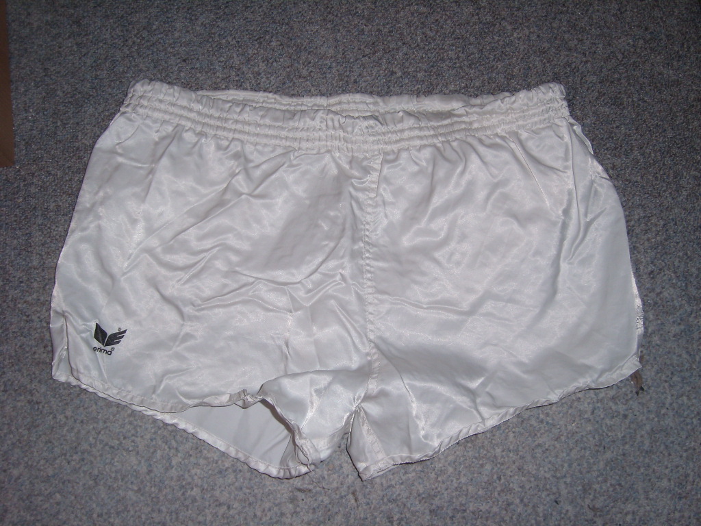 Es erwartet Euch eine Erima Glanzshorts in weiß Größe 6