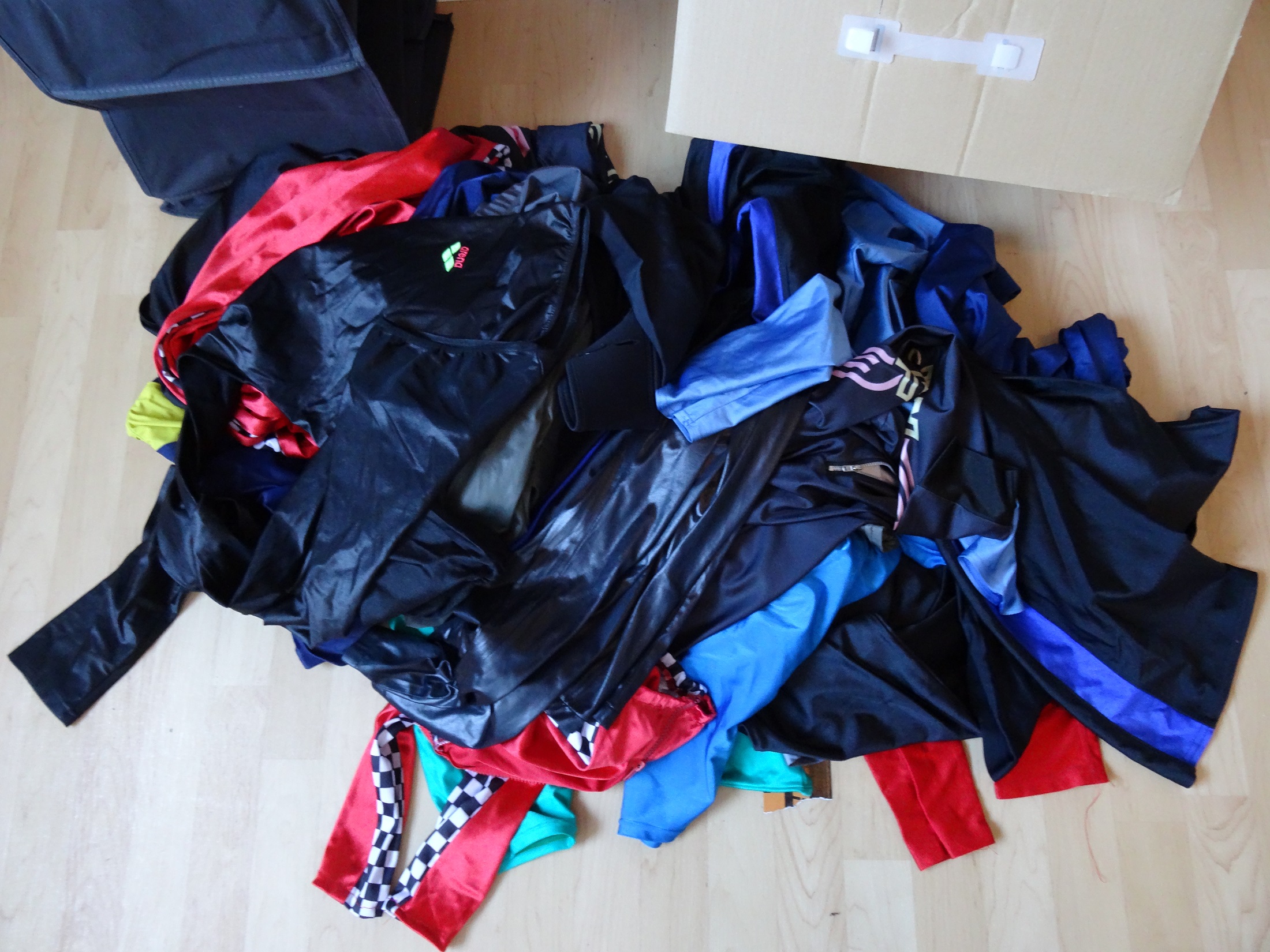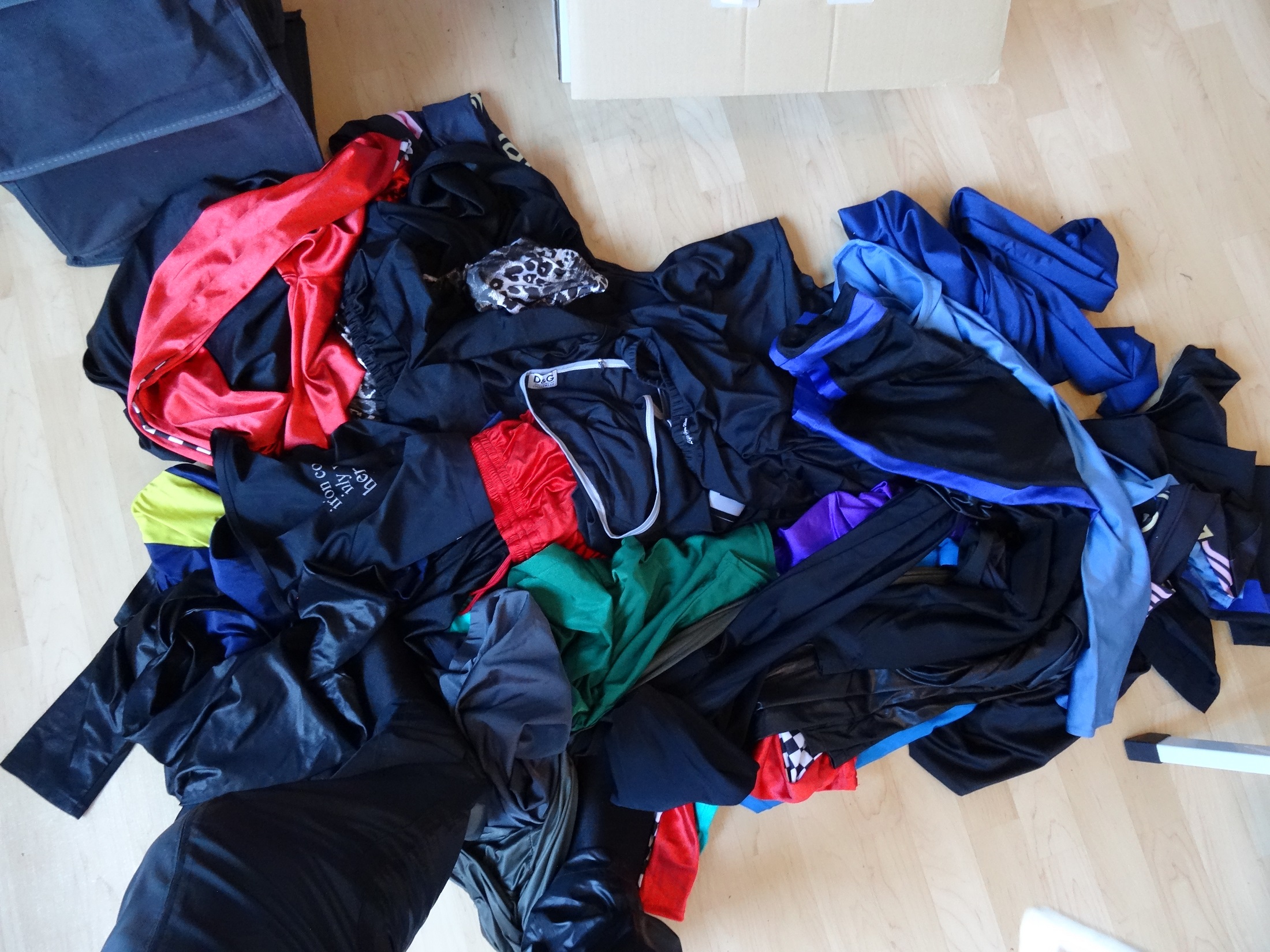 Als ich den Karton mit der Aufschrift "Badesachen" vom Boden holte und öffnete fand ich nicht nur Ihre Badesachen sondern auch die ganzen alten Voltegier- und Tanzklamotten von "vor unserer Zeit" die ich bis jetzt nur von Fotos kannte.