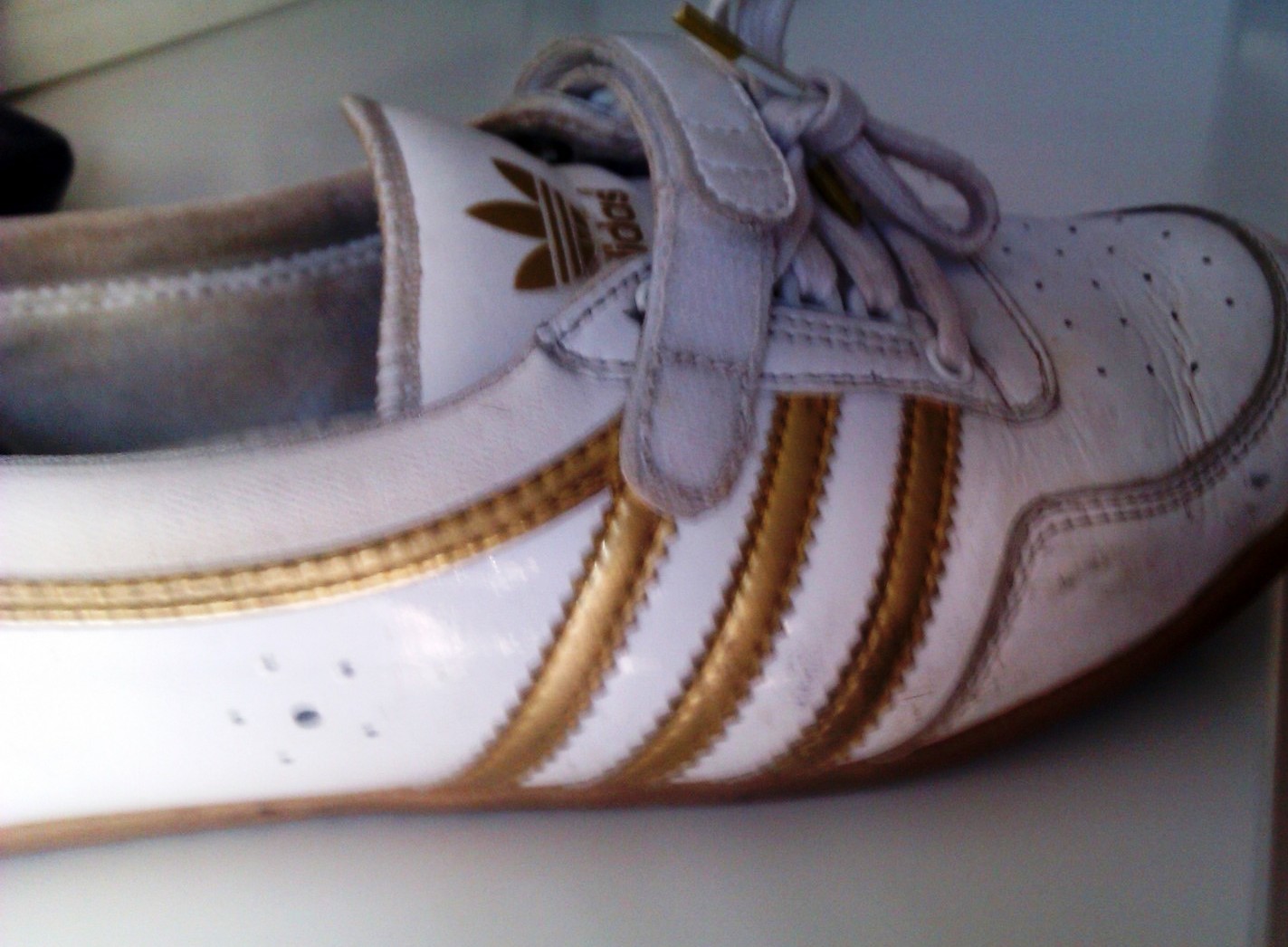 frisch duftend und makellos sauber und das abgescheuerte adidas-Kleeblatt mit einem Goldlackstift wieder aufwändig restauriert, erinnerten nur noch dezente Tragespuren an die zuletzt etwas herzlose Behandlung durch die Trägerin.