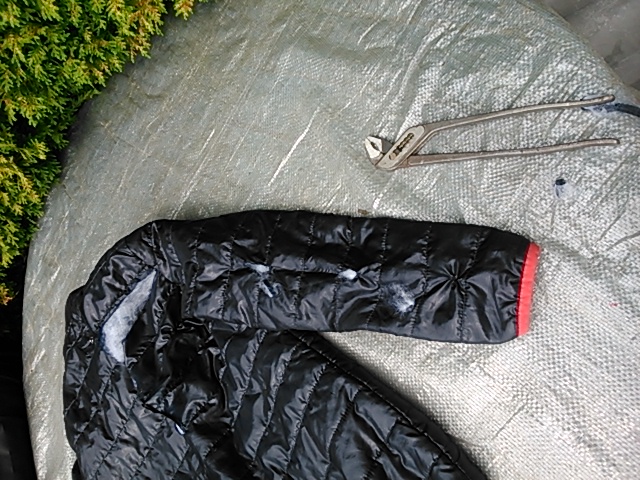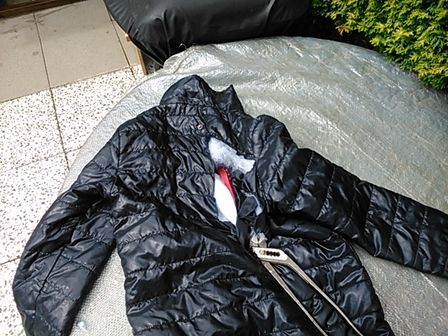 Die Jacke habe ich mit Hilfe der Zange kurz und klein in alle Einzelteile zerlegt.