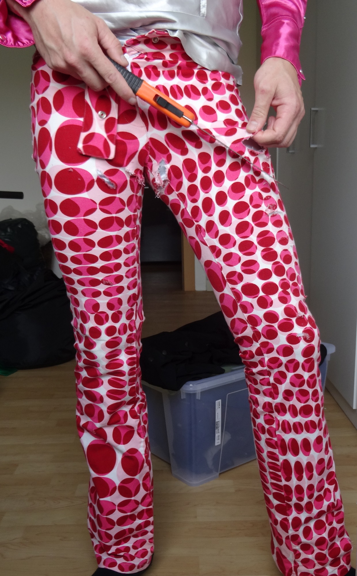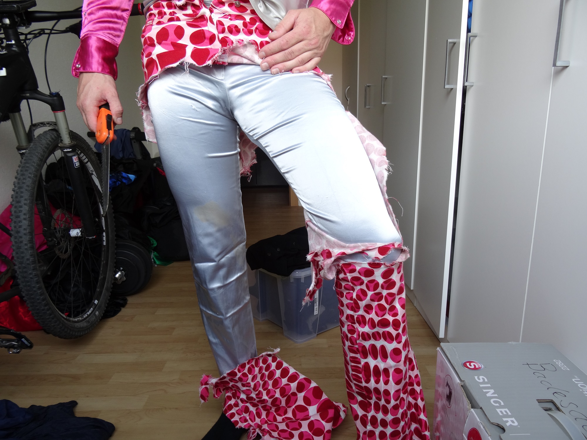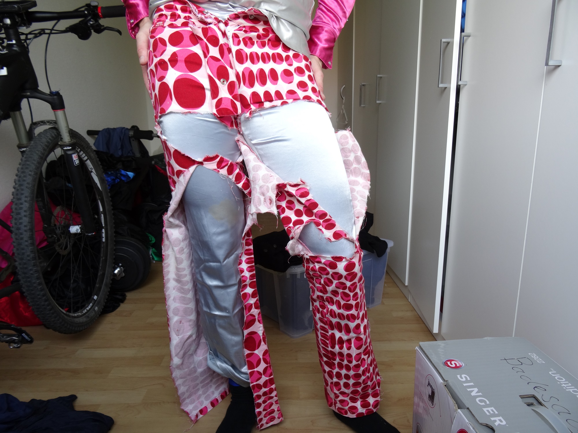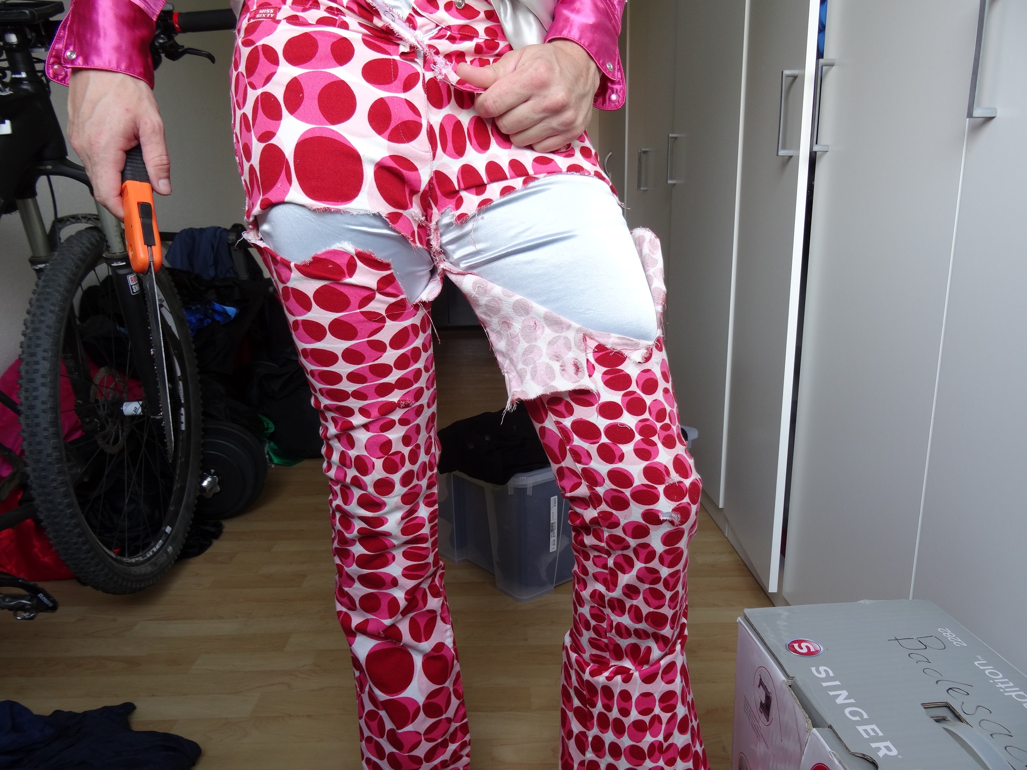 Also die weiße rot gepunktete Hose macht wirklich Augenkrebs