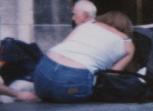 In den 70ern hatten viele diese Wrangler Jeans mit dem Plastik-Wranglerschildchen. Diese wurden nach kurzer Zeit, wenn die Hose ausgewaschen war abgerissen. Das Schild der jungen Dame auf dem angehängten Bild war auch schon halb lose. Sie hat es öfter mit der Hand angefasst. Ich denke es war nicht mehr lange dran.