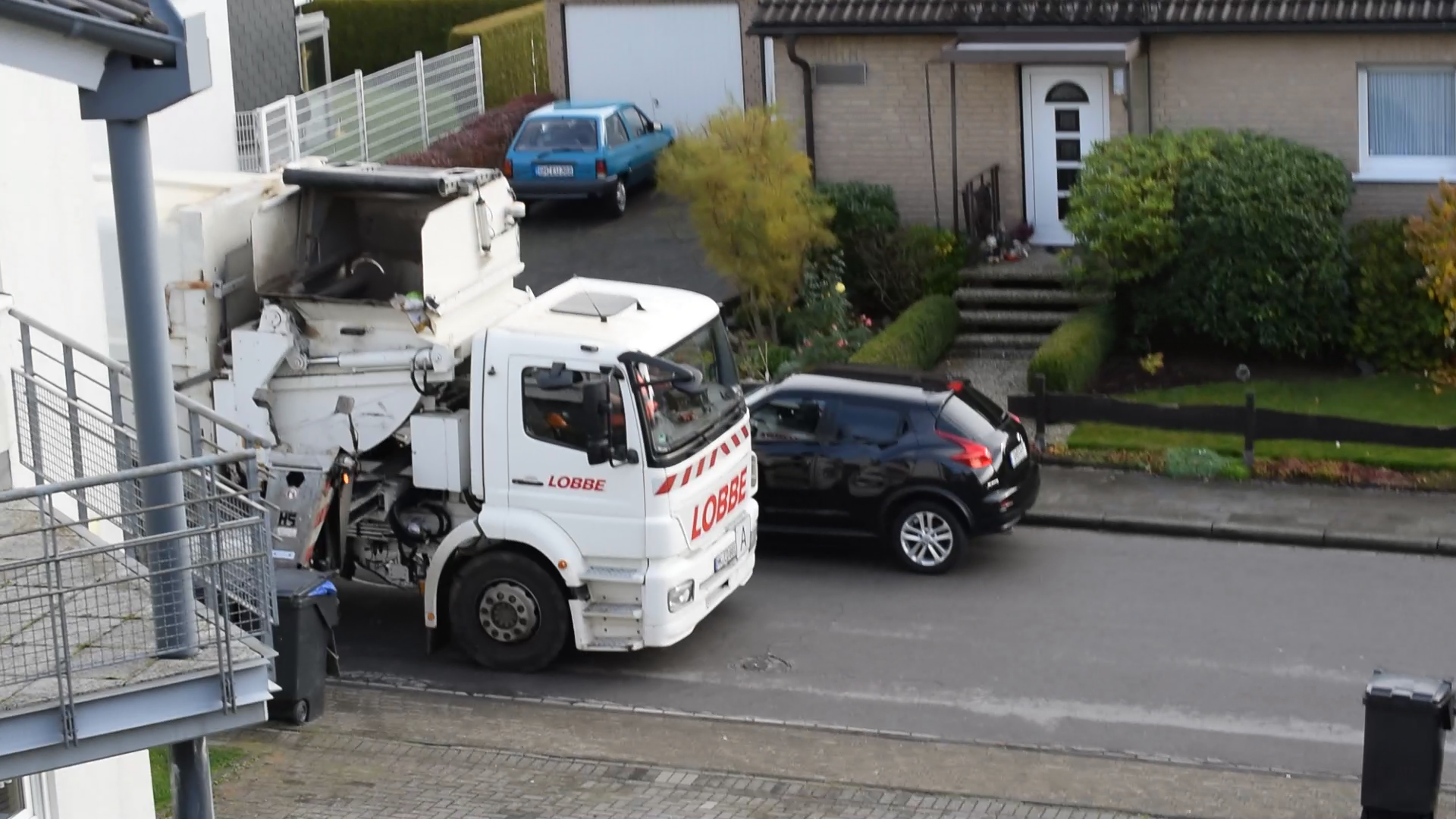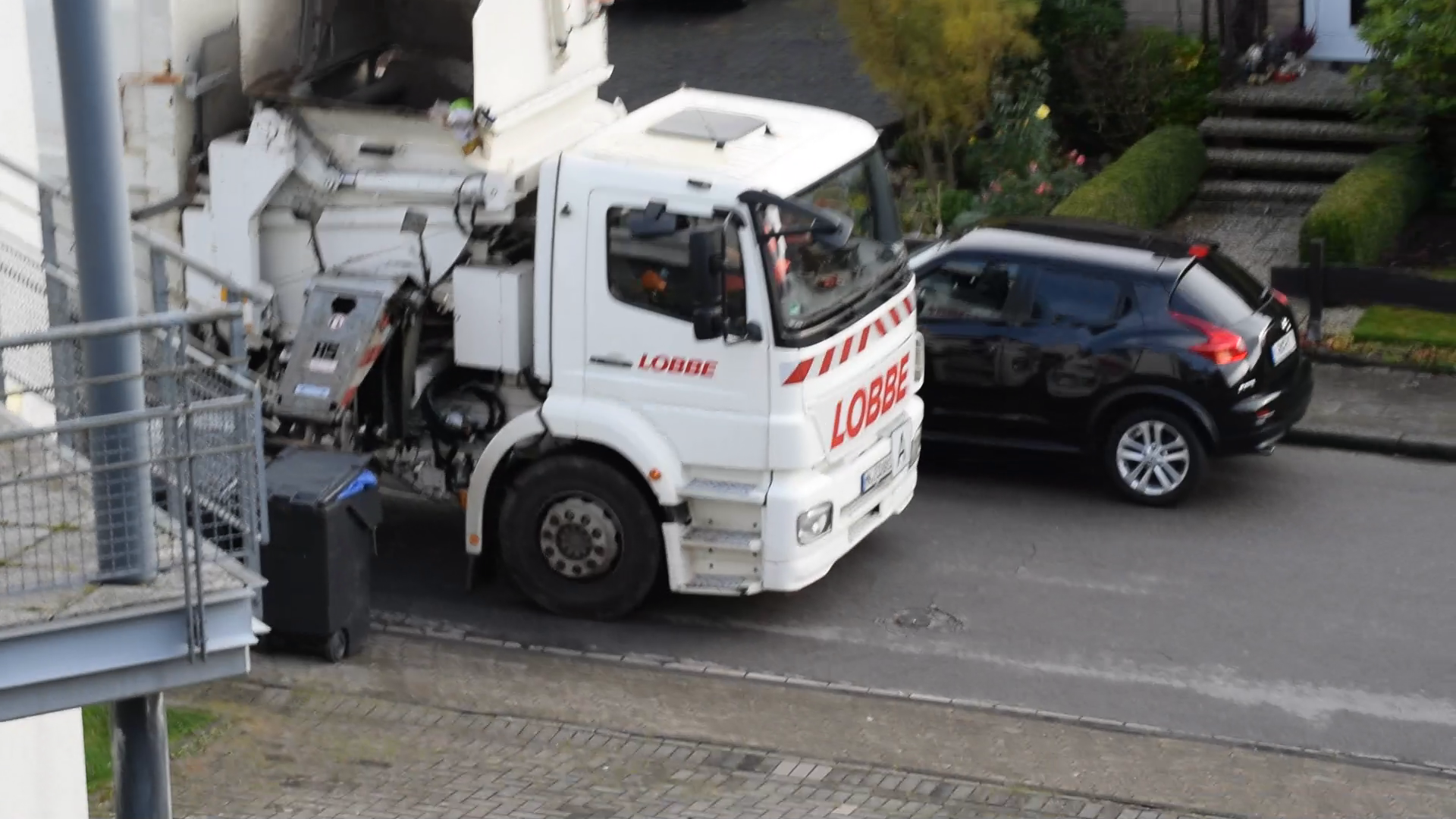 Für Rest, Bio und Papier nutzen sie die Seitenlader. Die Fotos sind aus dem zweiten OG gemacht, sonst hätte ich keine Chance halbwegs was zu knipsen.