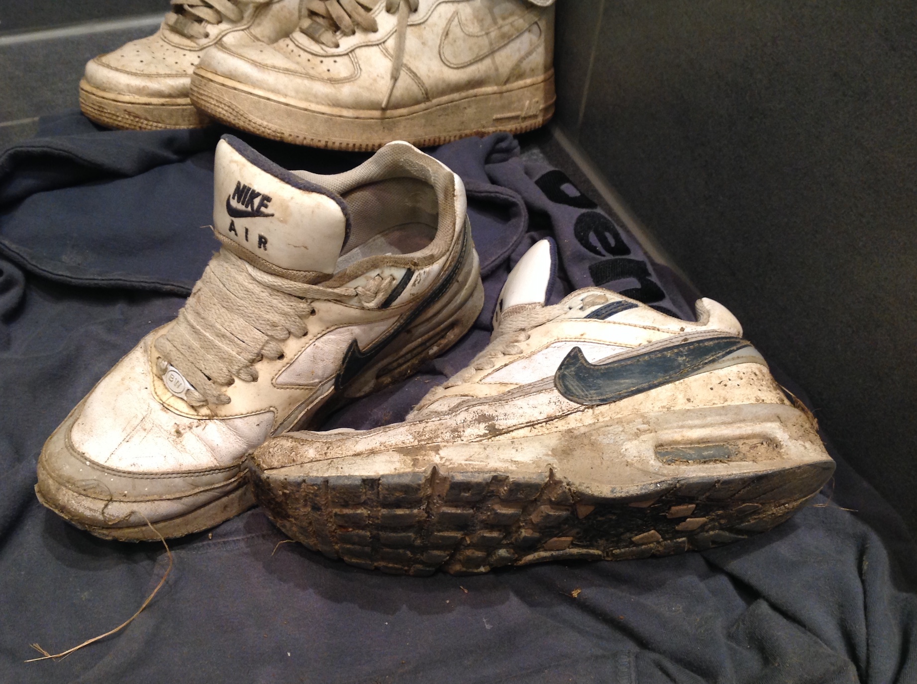 ...die schönen weissen Nike Airmax BW Gr 40 wurden eines Tages mit in den Stall genommen, und seitdem zu Stallschuhen degradiert. Geputzt wird da nix mehr dran, da sie als Wechselschuhe auch barfuss und mit dreckigen Socken aus den stiefeln genutzt werden sind sie mittlerweile auch innen ziemlich versaut. Der Besitzerin alles egal... übel nach Pferdemist stinken die auch mittlerweile... für meinen Geschmack genau die richtige natürliche Vernichtung für so Nikes, was meint ihr?