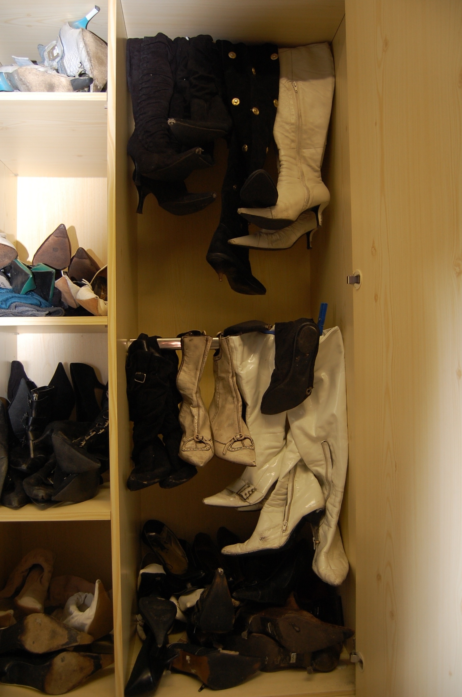 Fassungslos, schockiert und auch ein wenig entsetzt schluckte ich erst einmal kräftig. Ich sah eine Vielzahl von Schuhen in den Fächern. Glücklicherweise waren die Fächer nicht alle prall gefüllt. Viele Gedanken schossen mir durch den Kopf. Kurzzeitige Erinnerung in der Form: Ah, die leben also immer noch, das Paar ist also hier abgeblieben, nach denen habe ich schon einmal vergeblich gesucht und warum sind die denn noch da?