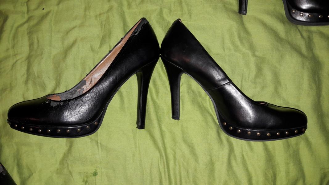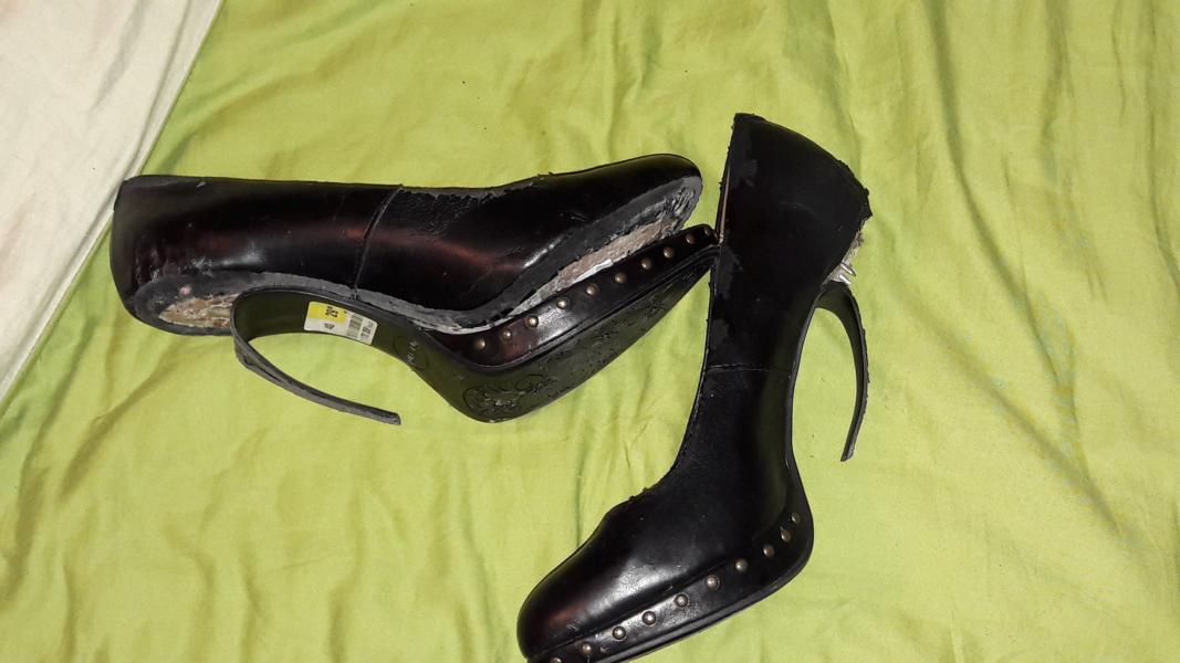 Ich nahm de Bohrmaschine und entfernte die Absätze, tauschte sie, verschraubte sie sauber mit je 3 Schrauben an dem besseren Pumps und schnitt auch ein wenig Gummisohle der kaputten Pumps ab um die fehlende Stelle am Absatz zuzukleben. Danach habe ich mit Durchsichtigem Spray die Oberfläche bezogen, zum Schutz vor Alterung. sieht doch coool aus!