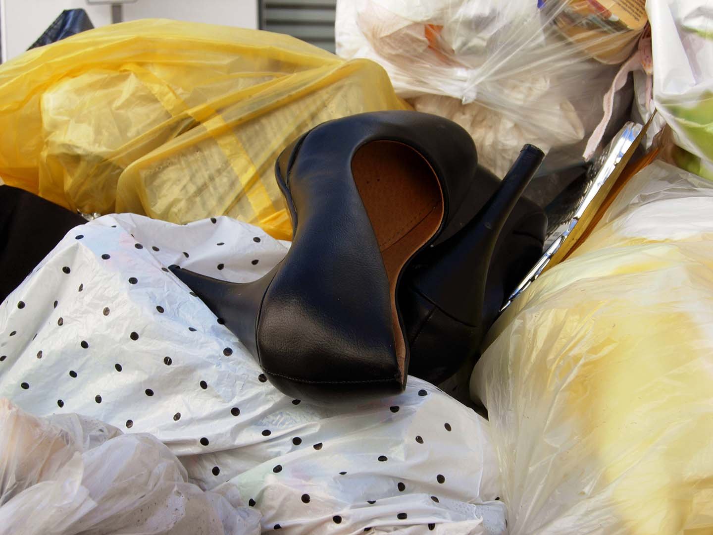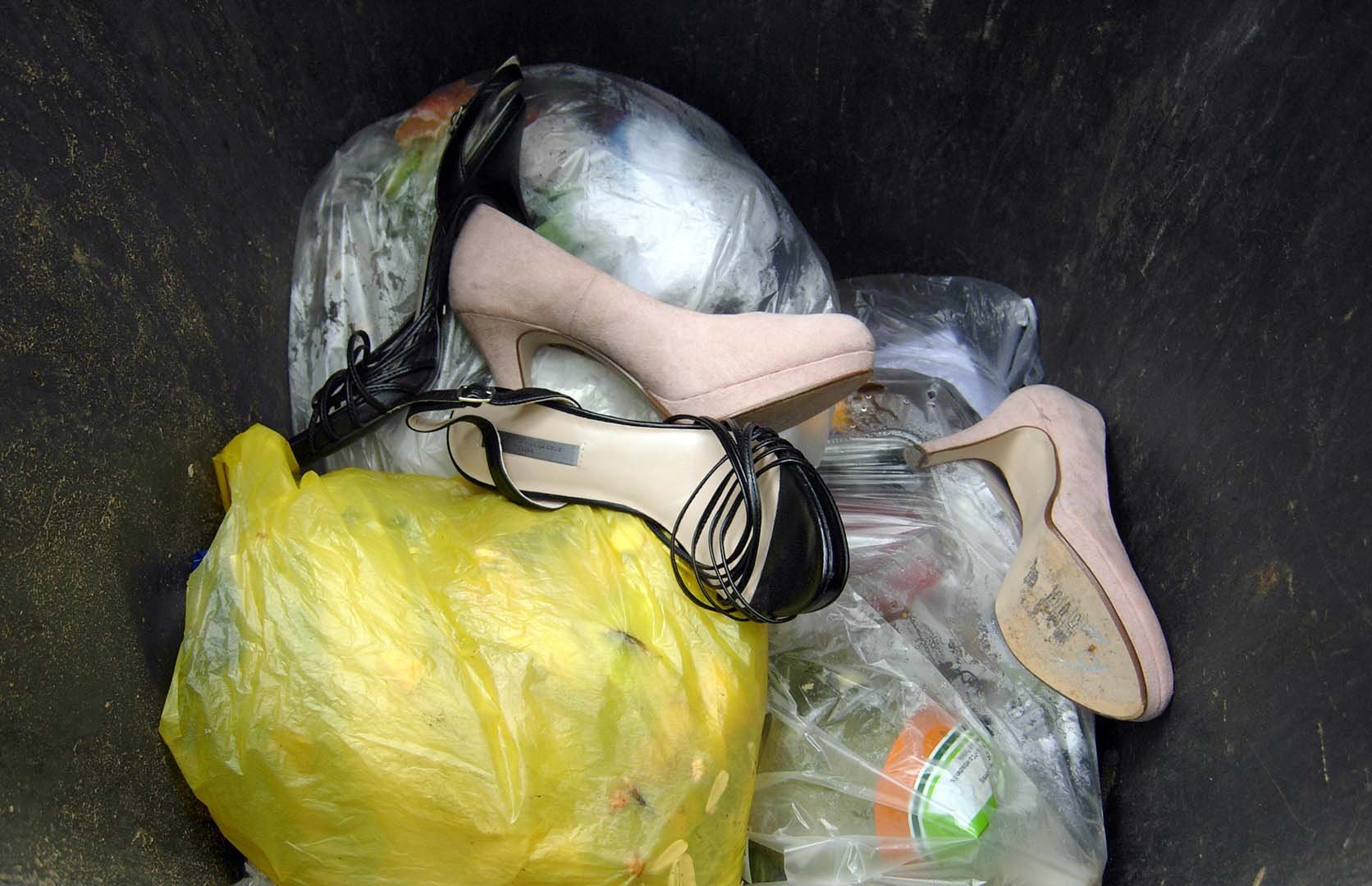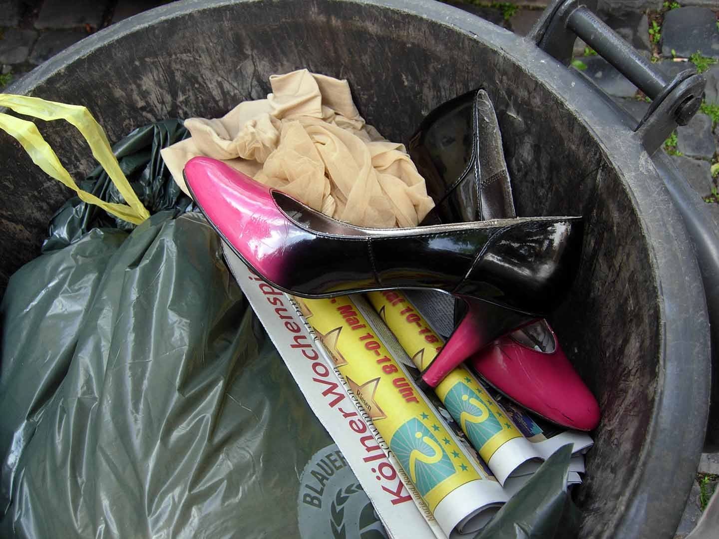 Pumps und Espadrilles im Restmüll.