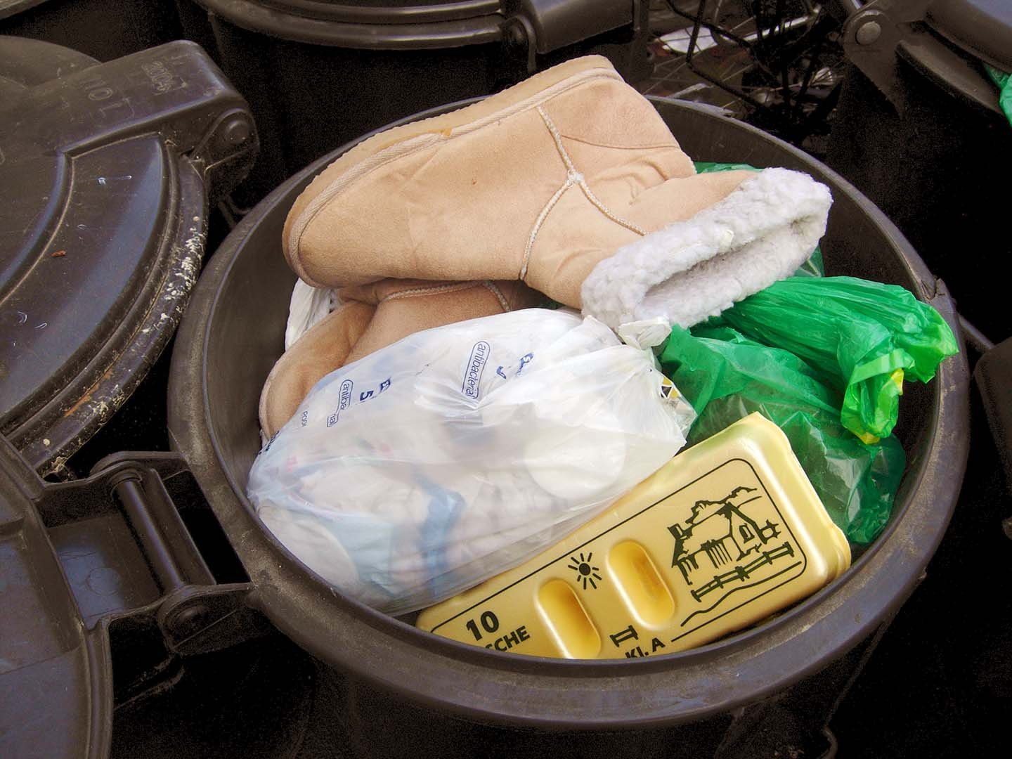 Uggs in der Mülltonne.