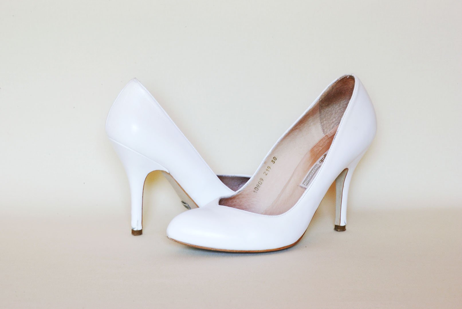 Während Brautkleider jahrzehntelang aufgehoben oder nach der Hochzeit weiterverkauft werden, landen die Brautschuhe früher oder später ganz profan im Müll. Die weißen Buffalos standen nach der Hochzeit jahrelang im Schuhschank, und wurden neulich kurzerhand aussortiert. Am nächsten Morgen lagen die völlig intakten Schuhe in der Mülltonne. Bevor sie der Müllabfuhr in die Hände fallen, wurden sie wieder aus der Mülltonne gefischt.