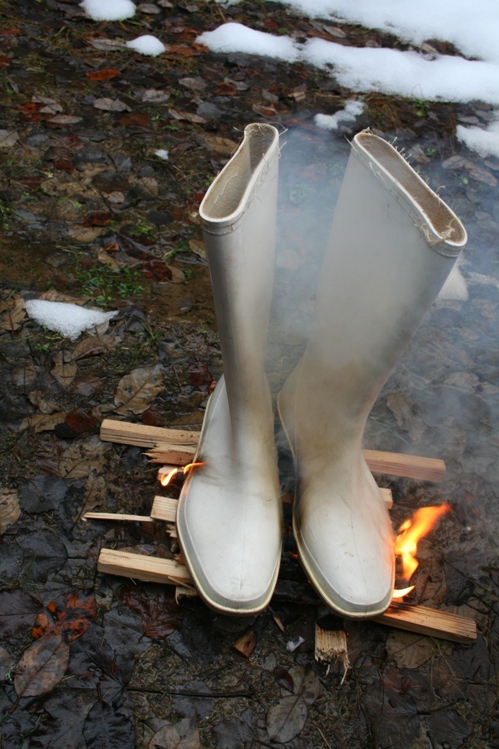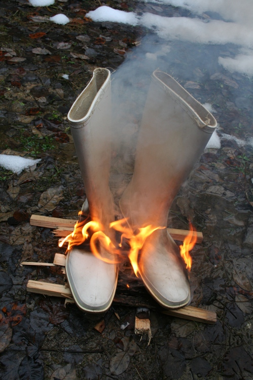 Manchmal möchte man den ganzen Schnee verbrennen. Ersatzweise habe ich hier mal weiße Gummistiefel genommen.