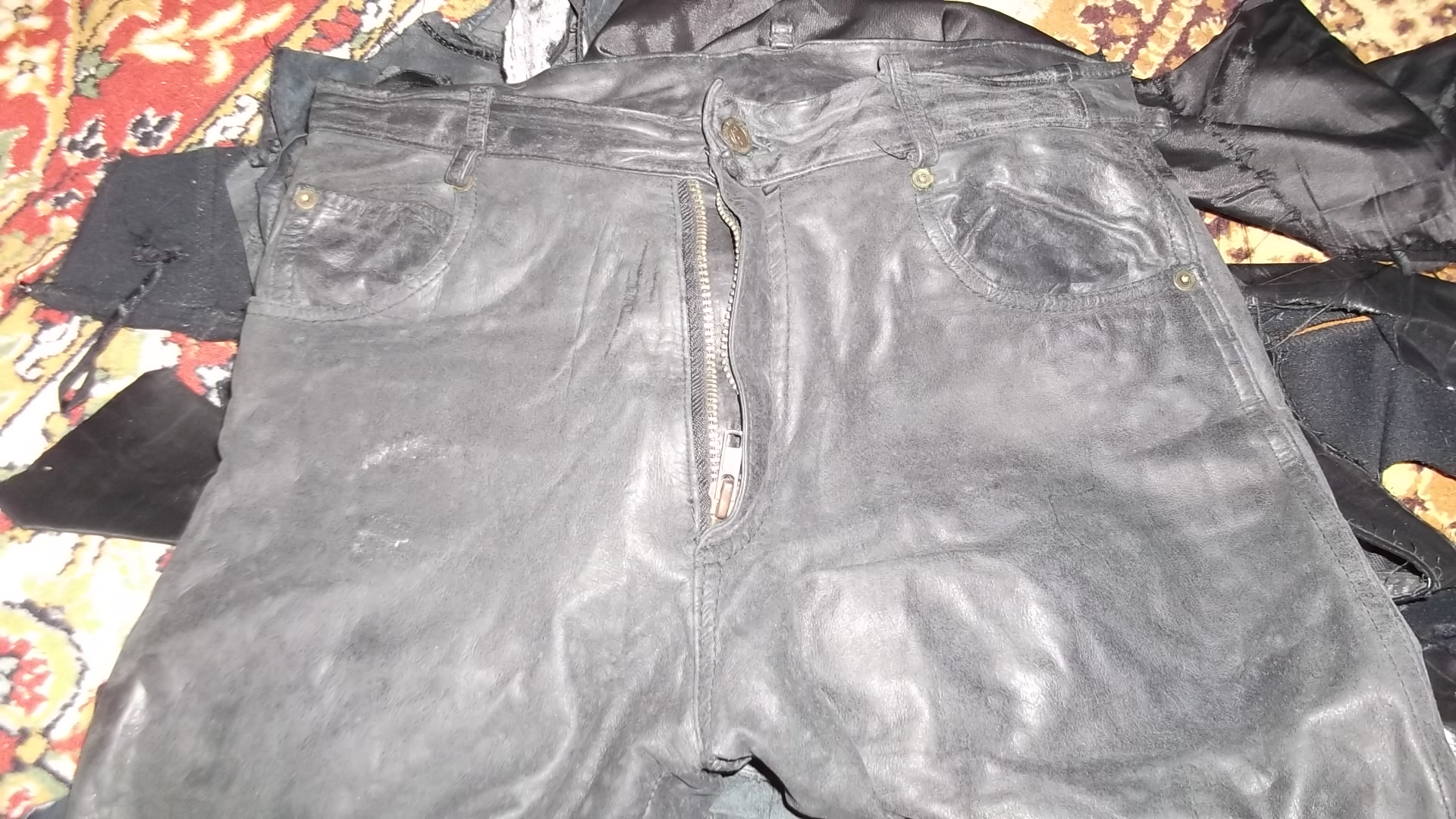 also entweder ist am Hintern das Leder aufgerissen, oder die Lederhose wurde ausrangiert und vorne der Reißverschluss rausgeschnitten und die Hose vor ihrer Vermüllung ausgeschlachtet