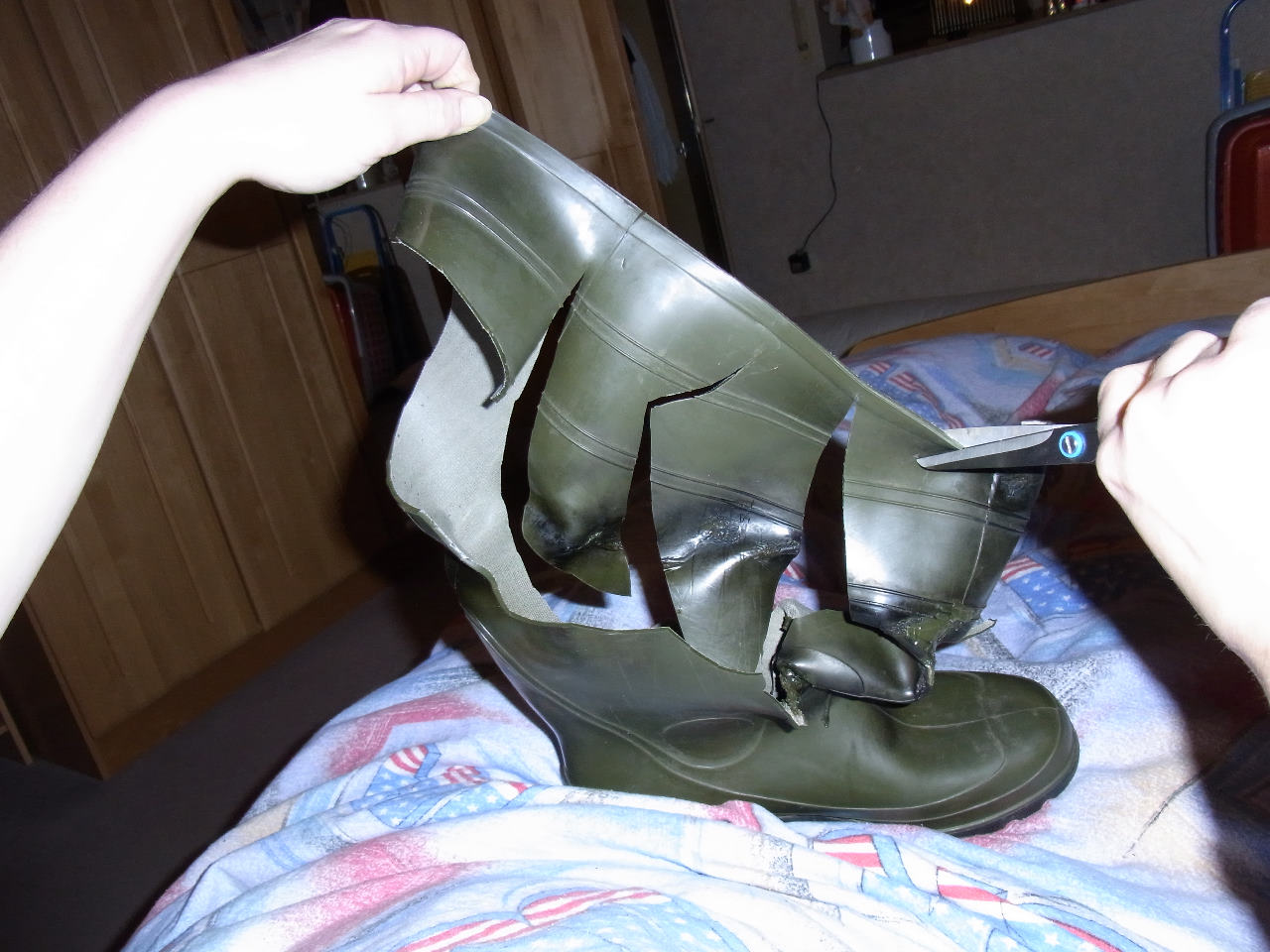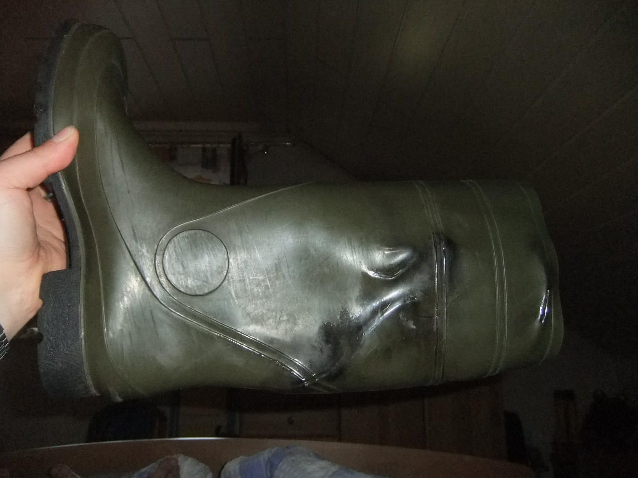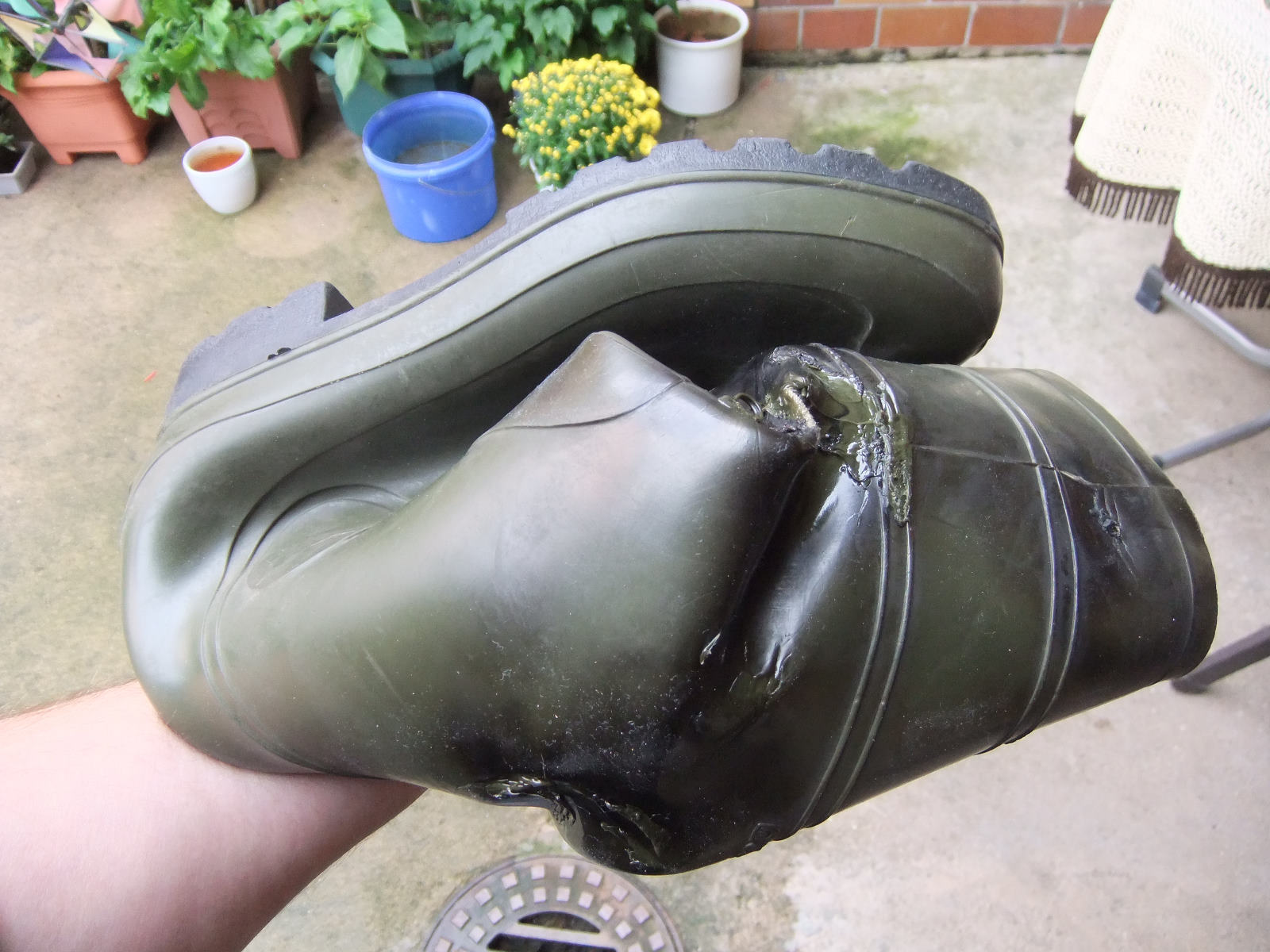 hier habe ich mal ein paar Bilder von der Gummistiefel Vernichtung, wie Sabsebine den ersten Stiefel bearbeitet. :evil: :evil: :evil: :evil: