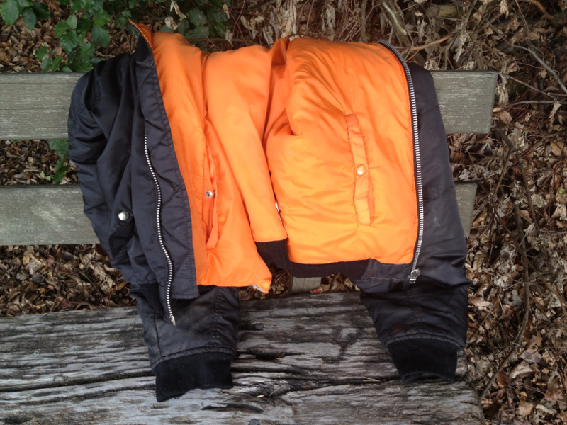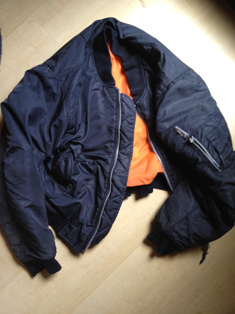 Das orange innenfutter von der verdreckten Bomberjacke hab ich schon mal aufgerissen. Die Nähte haben nur so gekracht...