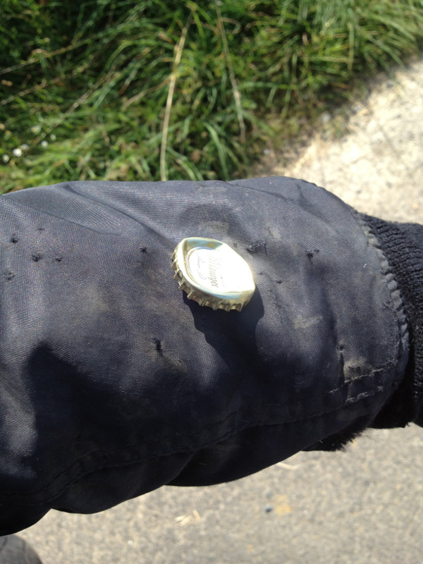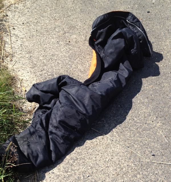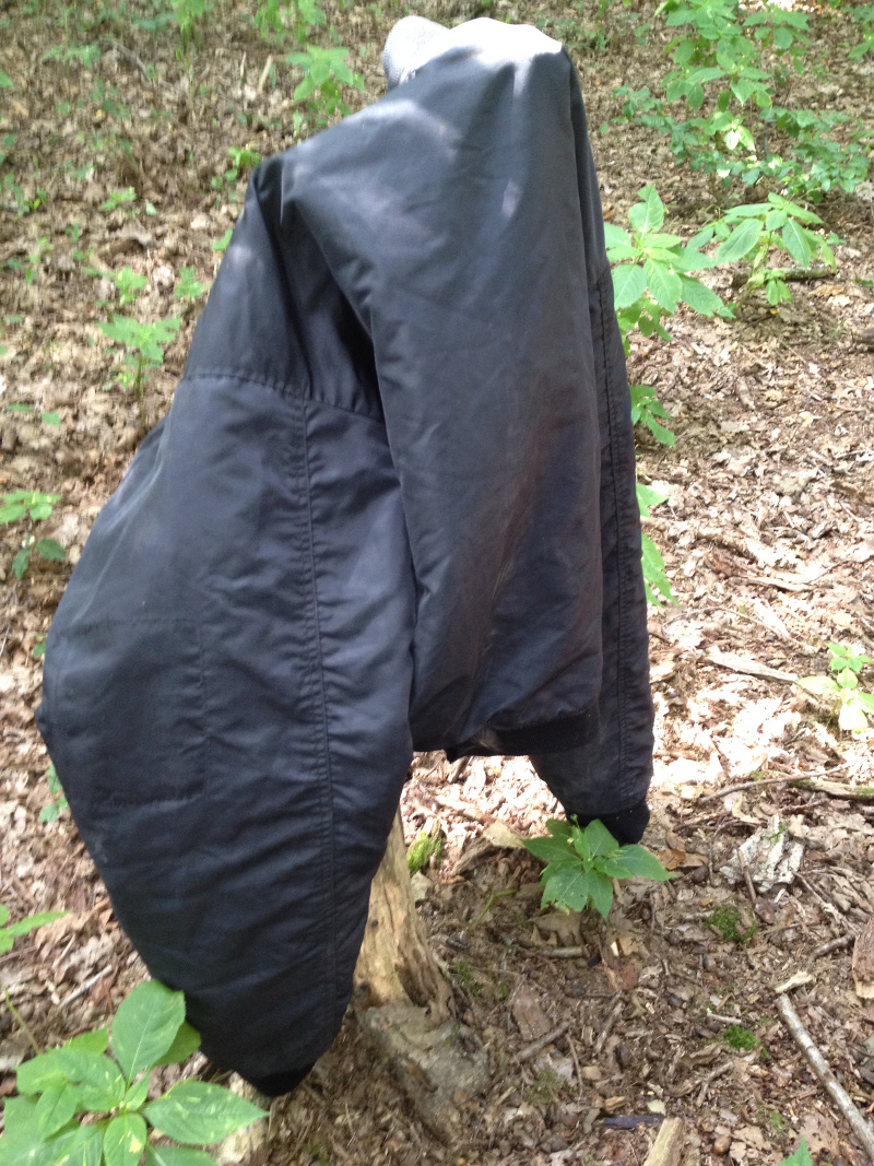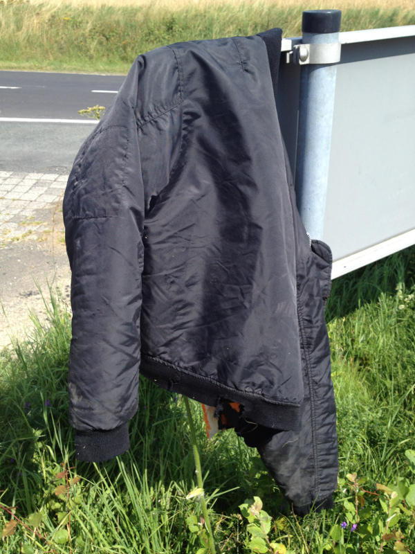 Mülltonne? Da geht doch noch mehr kaputt zu machen. Die Ärmel sind noch dran und der Innenstoff auch noch teilweise. Das kann alles noch weg