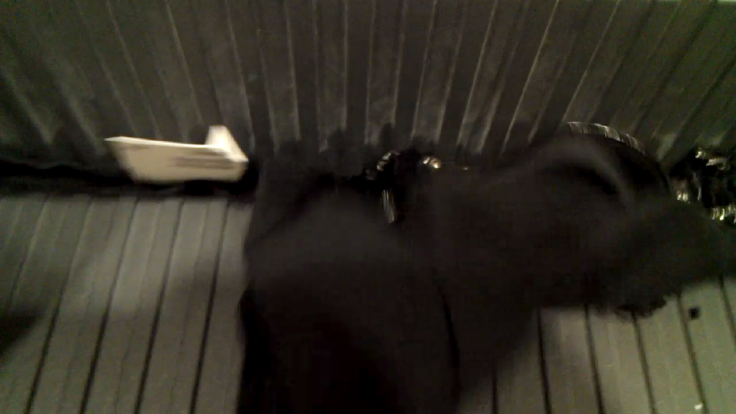 Verschrottung von Röckchen 6 und 7, wie erwähnt in Längs- und Querrichtung. Wie vemutet, geben die Eingrifftaschen, wo der Lack doppelt ist dem Shredder zu schaffen. In Querrichtung einlagig geht es aber noch schlechter, da der Shredder den Jerseystoff nicht zu lieben scheint. Der relativ dicke elastische Bund ist wohl auch nicht allzu leichte Kost (ist schliesslich dicker Jeseystoff und eine bis zwei Lagen - je nach Stelle - Lackstoff hineingenäht). Ganz abgesehen davon "wurstelt" es ziemlich, da der Rock höher ist als der Shredder breit ist. Wie man auf der Homepage von H&M sehen kann, handelt es sich schliesslich nicht um einen Minirock, sondern ein elegantes knielanges Modell. Wenn man die XS in Längsrichtung durchlässt, passt es hingegen sehr gut, bis zummoment wo die Taschen drankommen. Auch haben die Röckchen die Eigenschaft, gegen Schluss nicht mehr ganz so flach durchlaufen zu wollen. Als wollten sie sich bis zum bitteren Ende wehren. Vielleicht bringt es etwas, einmal einen Versuch "kopfvoran" durchzuführen und bei der zähen Taille sowie den Taschen etwas die Kinetische Energie der rotierenden Messer auszunutzen.