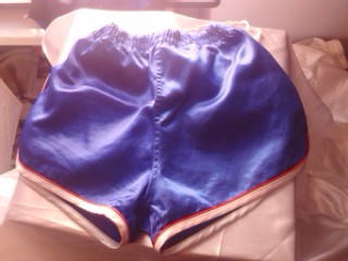 Eine ca 30 Jahre alte glanz shorts aus der Mülltonne eines Secondhand Ladens